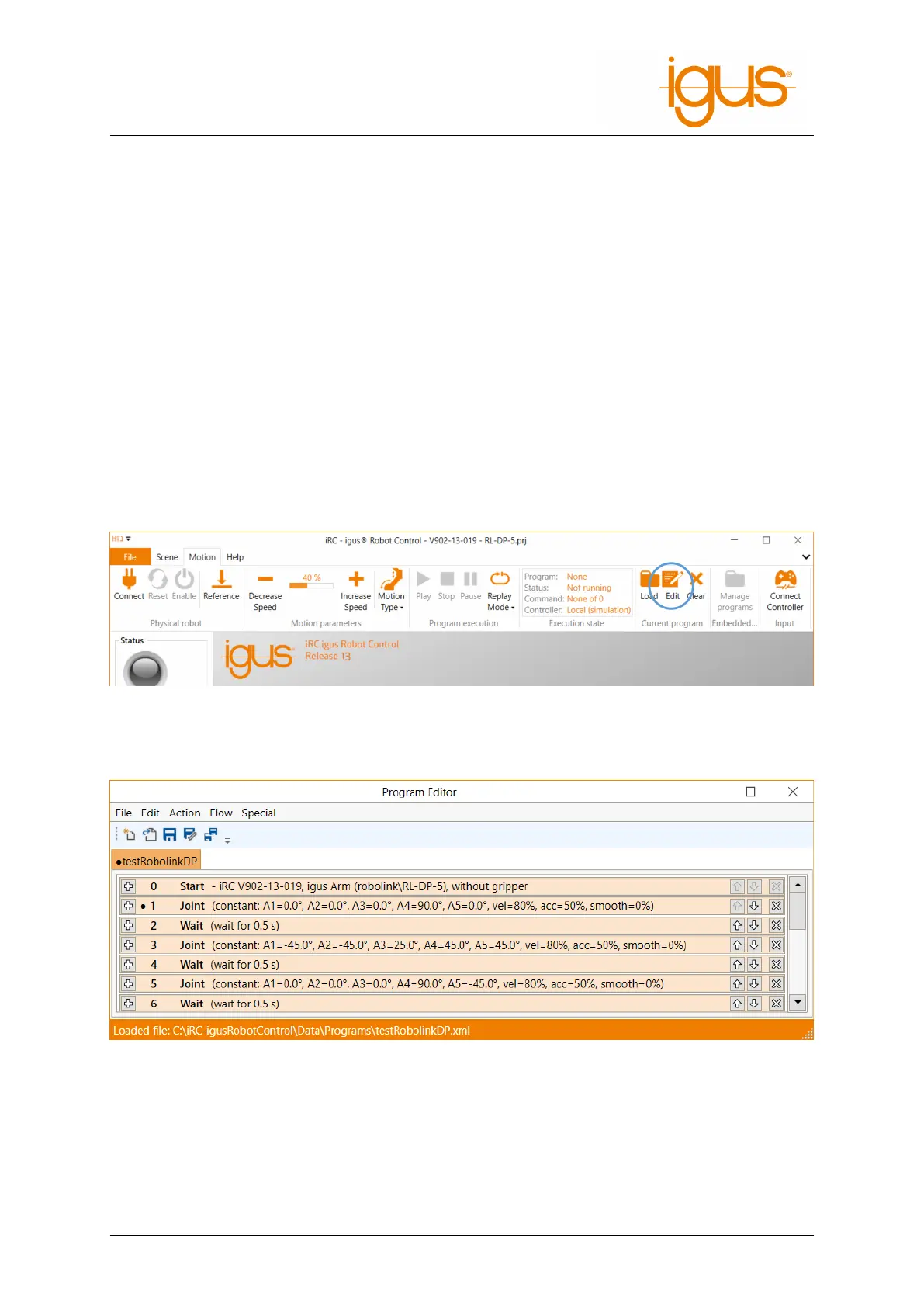 Figure 12: The program editor is opened by clicking "Edit".