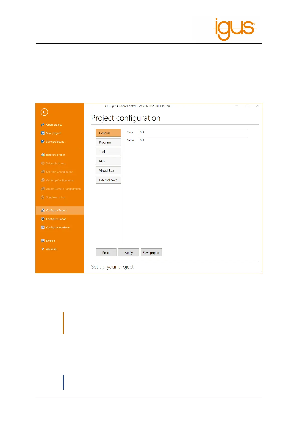 be found in the configuration area of iRC - igus Robot Control, which can be opened via "File" (see