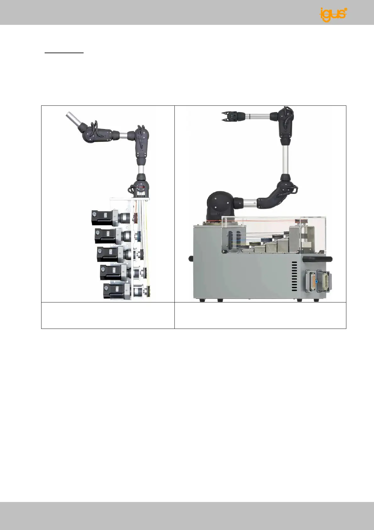 customized articulated arm, and a pre-assembled and tested drive unit. igus