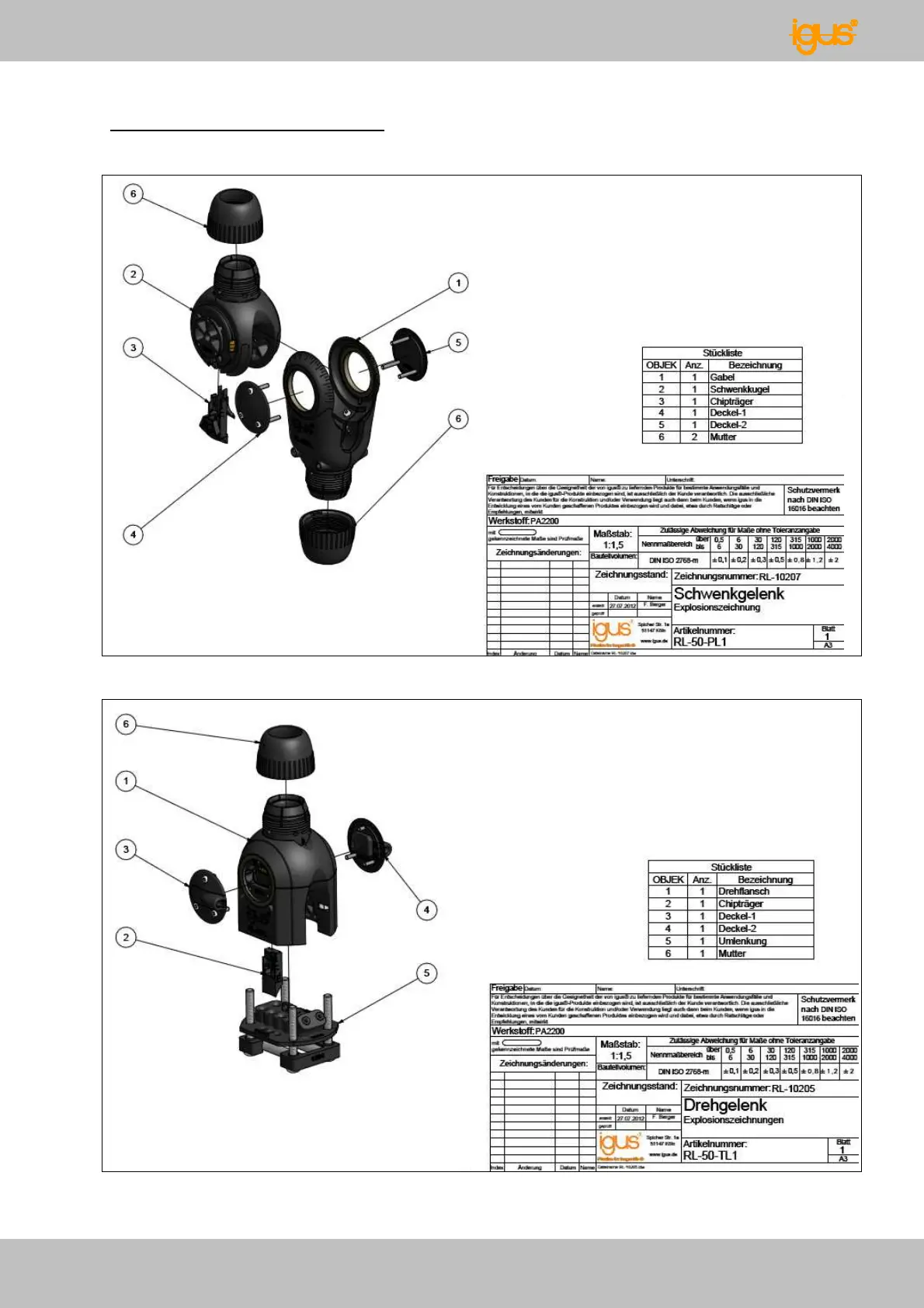 Fig. 54: Exploded drawing / parts list - Rotating joint RL-50-TL1