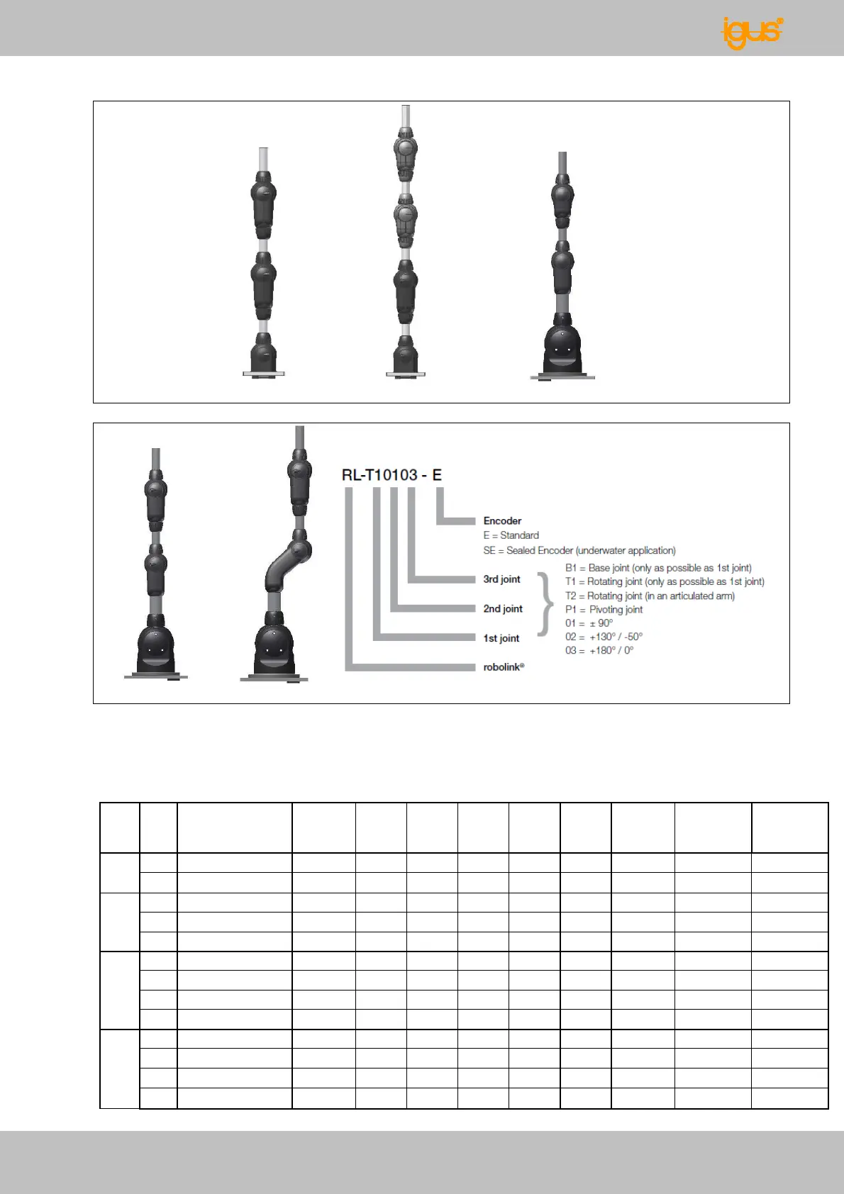 Fig. 18: Articulated arms with 6 DOF, ordering key