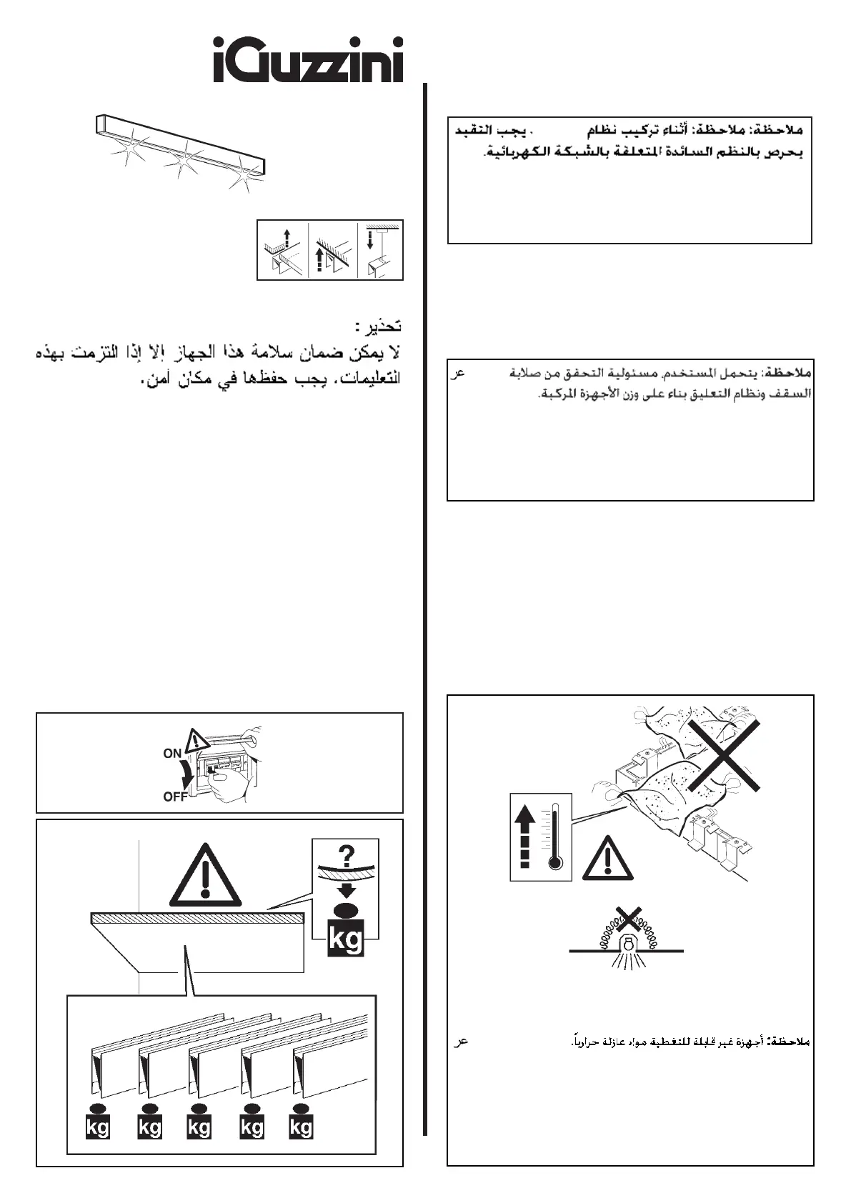 N.B.: It is the user’s responsibility to check the resistance of the ceiling and the anchoring