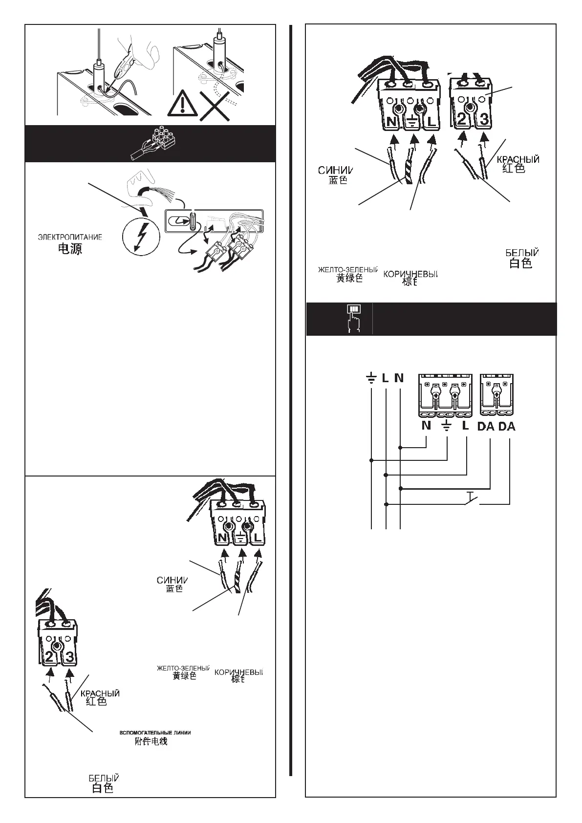 Отсоедините эти провода перед монтажом кабелепроводки прибора.