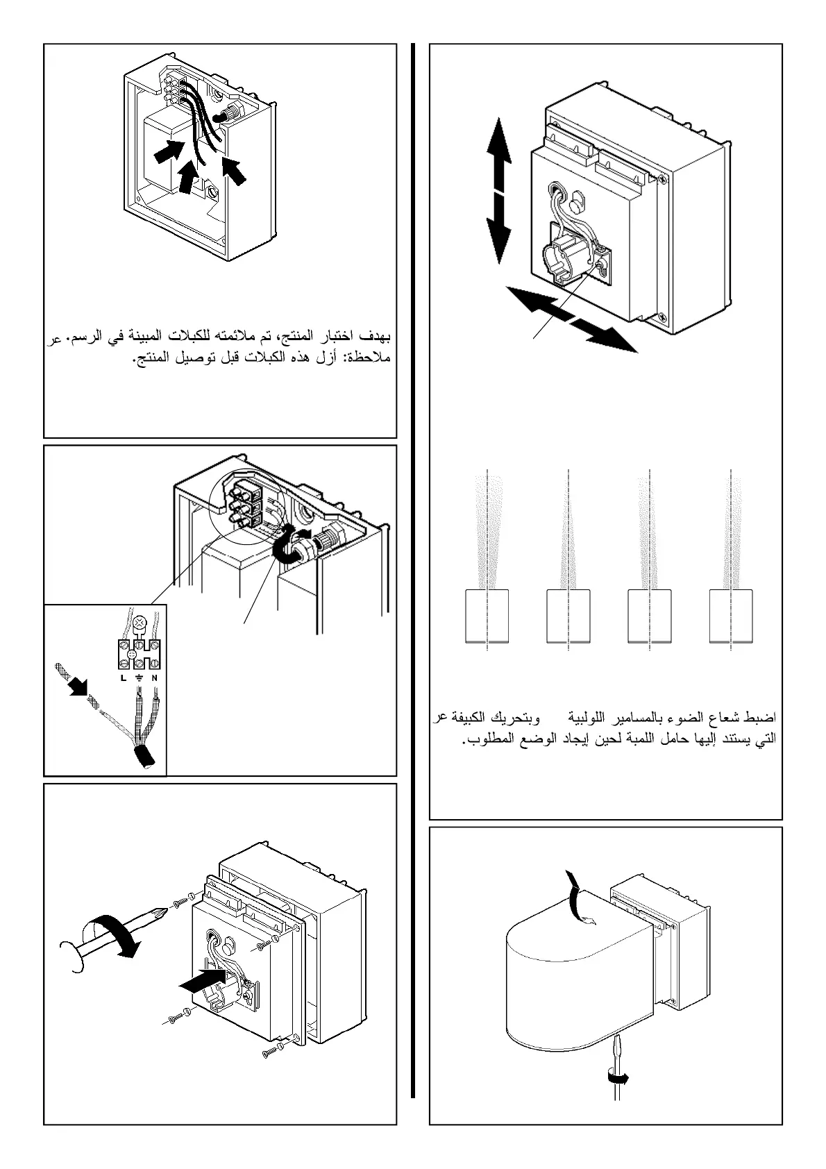 Per la regolazione del fascio luminoso agire sulle viti "T", rimuovendo la staffa di sostegno del