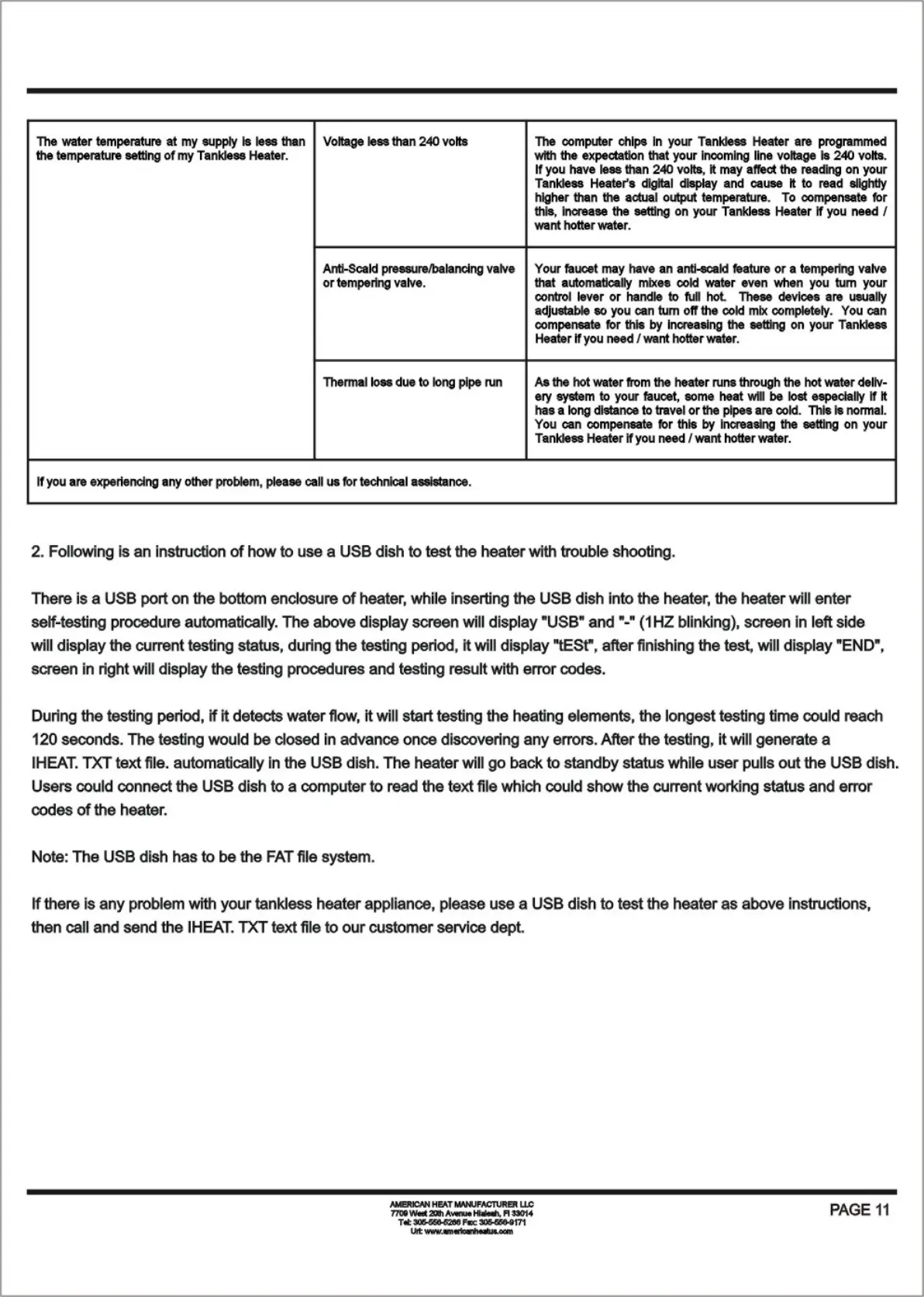 iHeat AHS18D - Error Code Instructions and Troubleshooting; Temperature and Flow Sensor Error Codes; Heating Element and PCB Error Codes