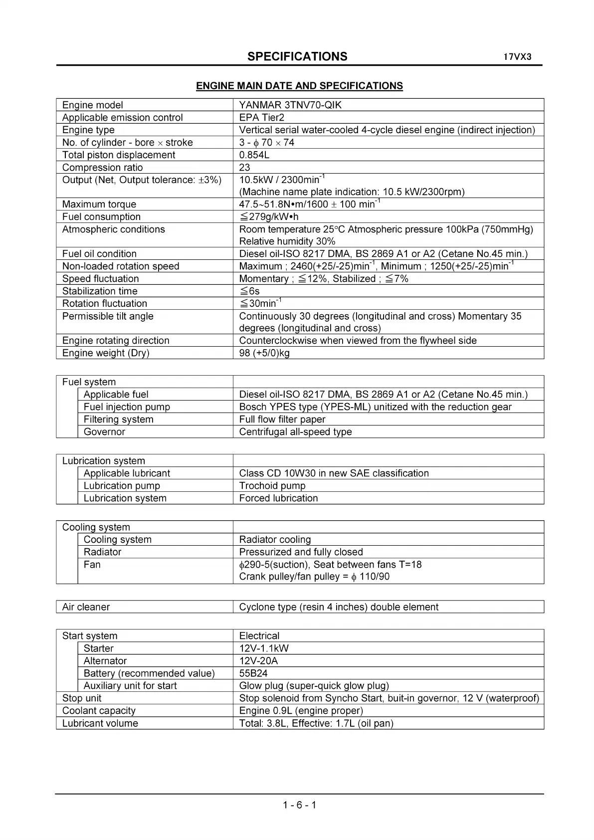 Engine type Vertical serial water-cooled 4-cycle diesel engine (indirect injection)