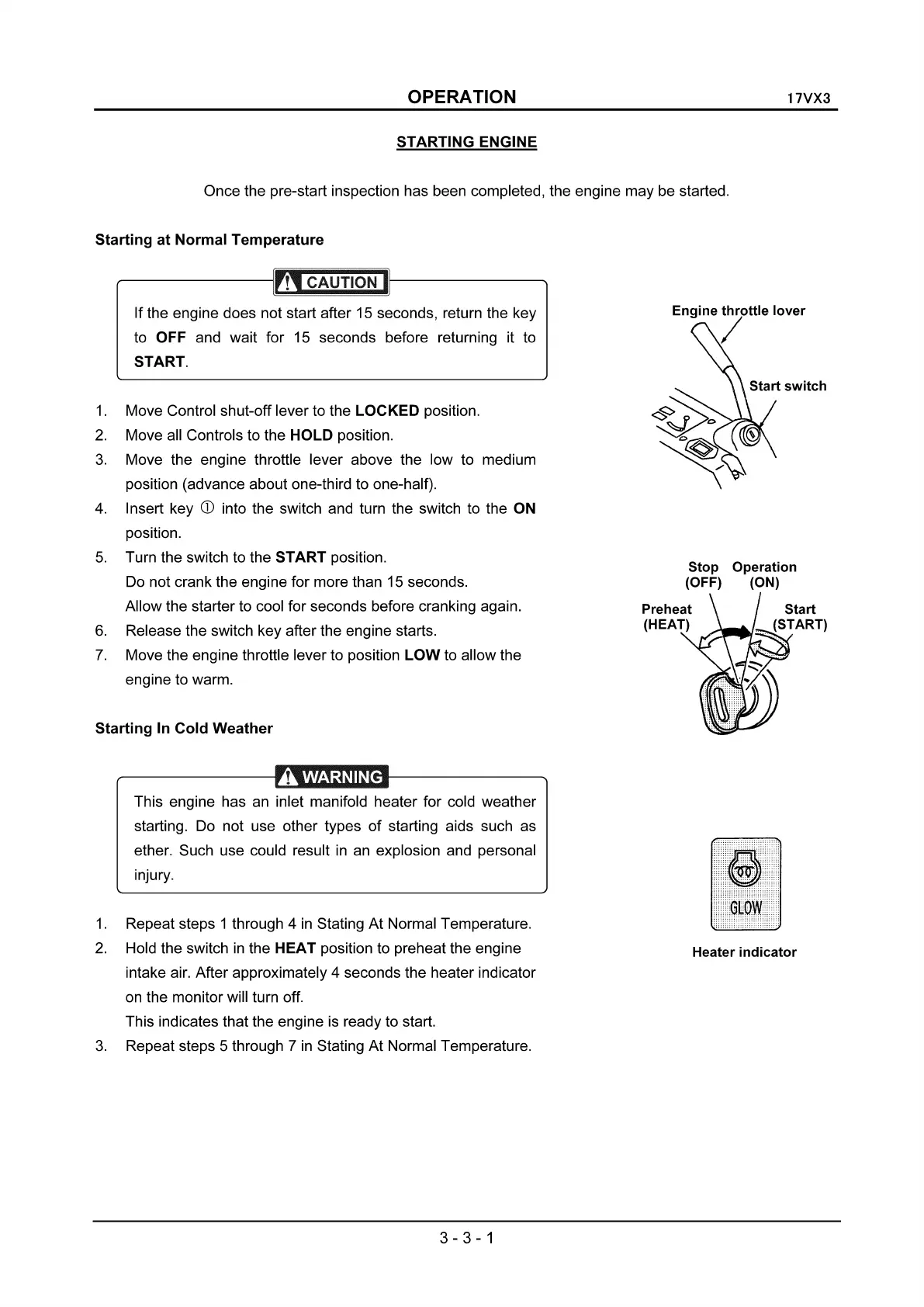 the HEAT position to preheat the engine