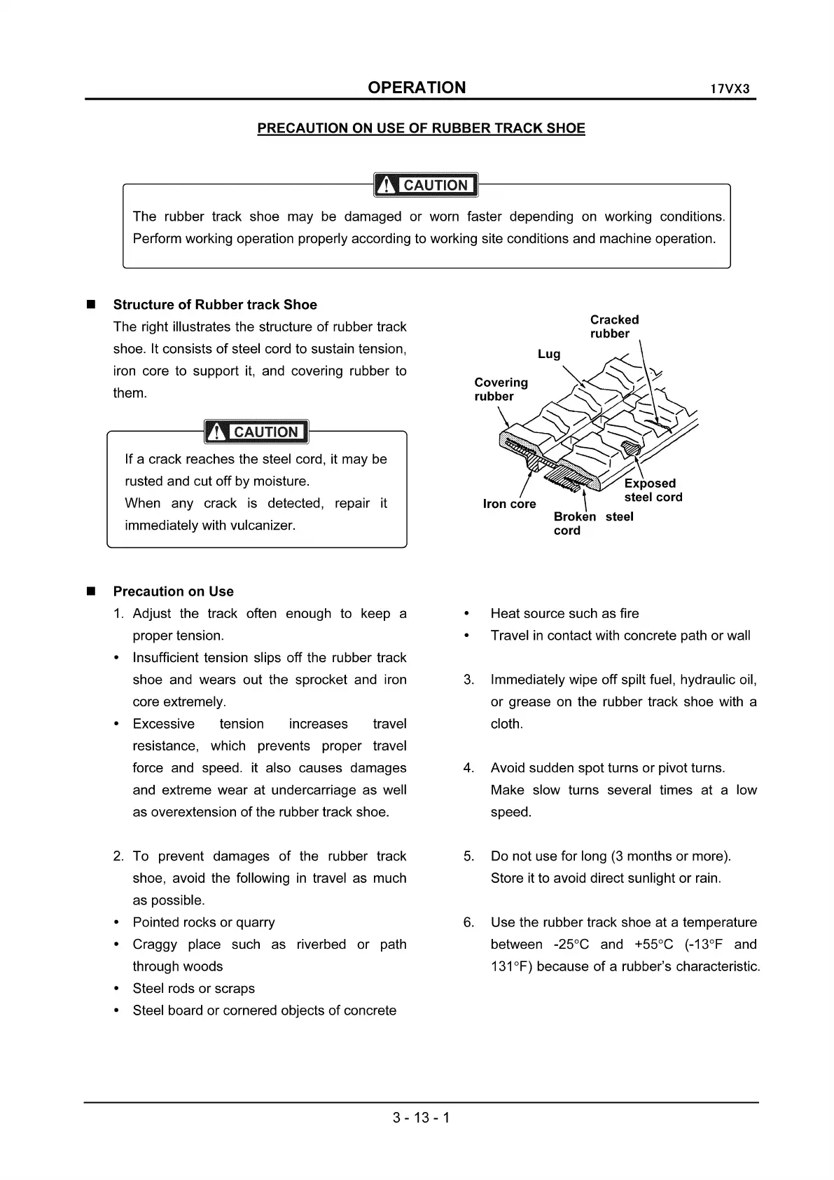 Use the rubber track shoe at a temperature