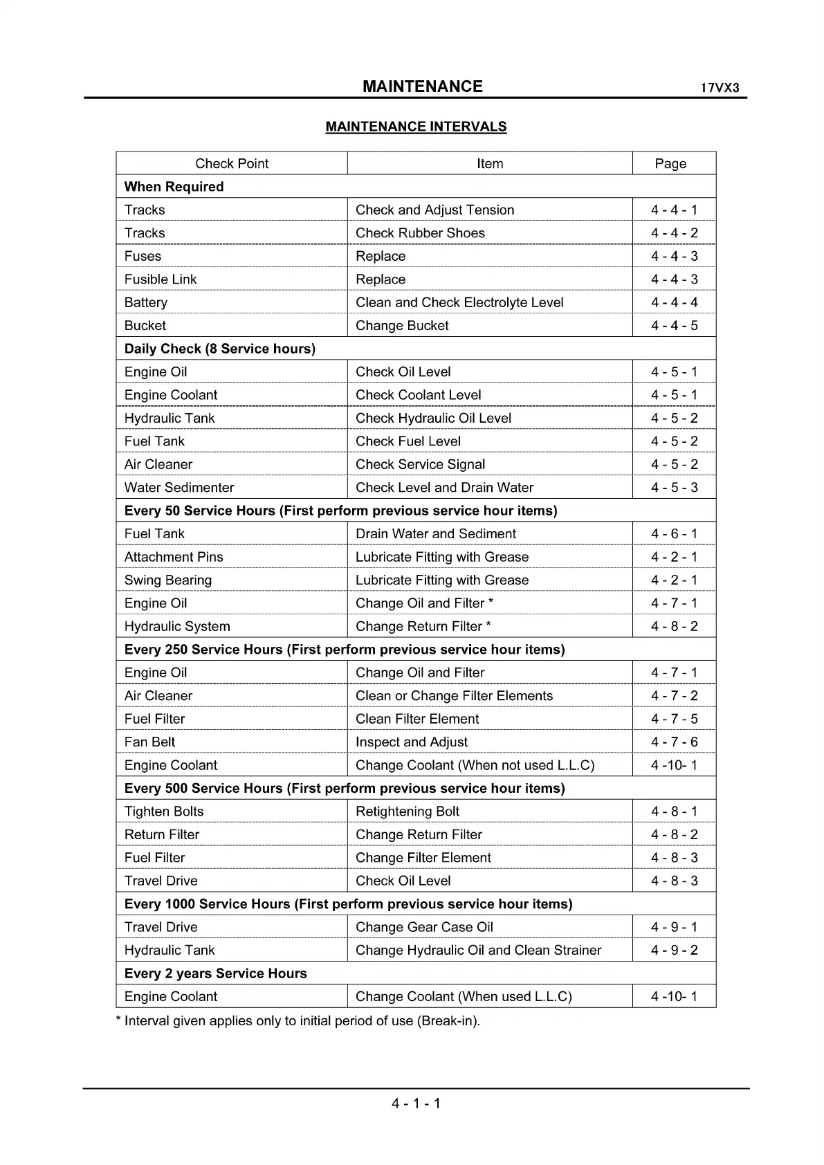 Engine Coolant Change Coolant (When not used L.L.C) 4 -10- 1