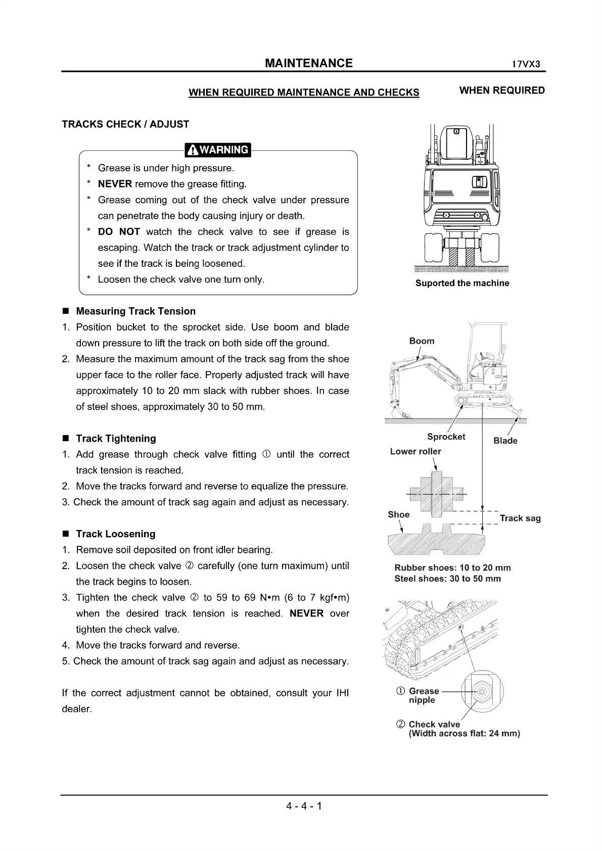 when the desired track tension is reached. NEVER over