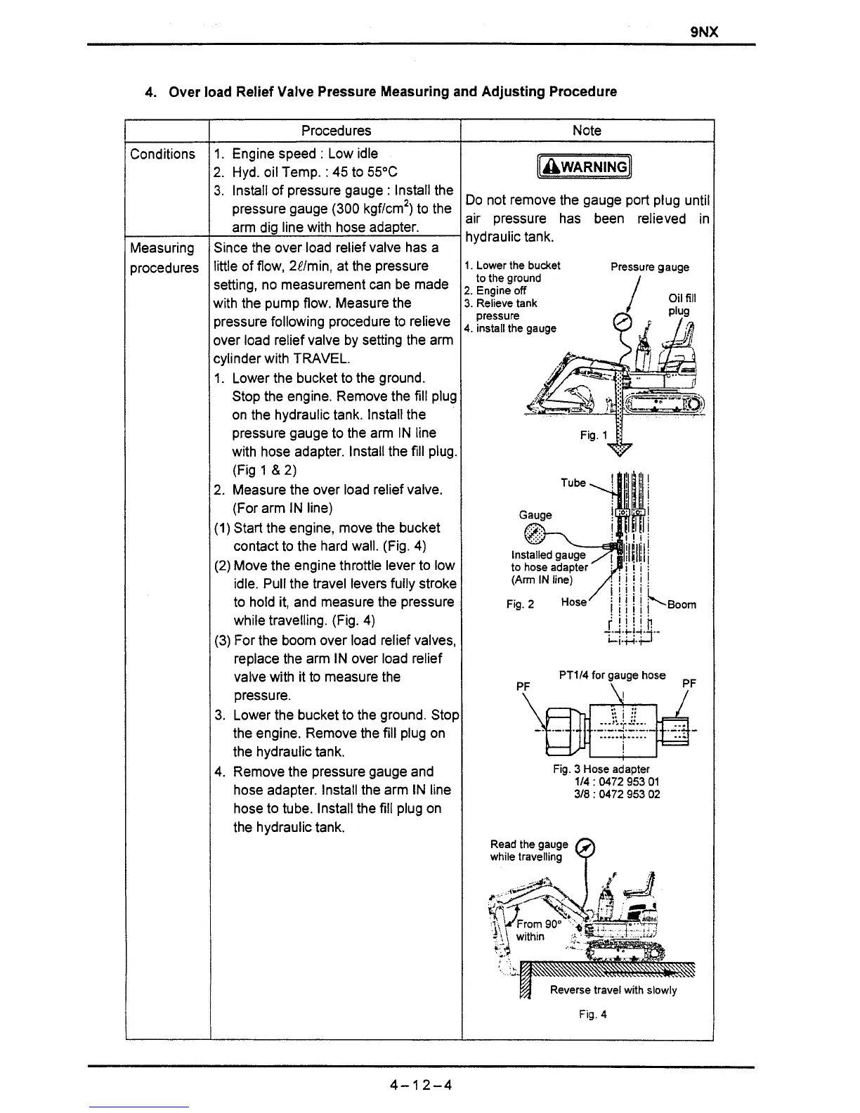 Over load Relief Valve Pressure Measuring and Adjusting Procedure
