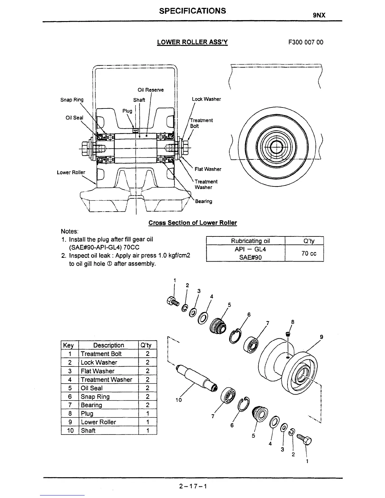 IHI 9NX - Lower Roller Assy