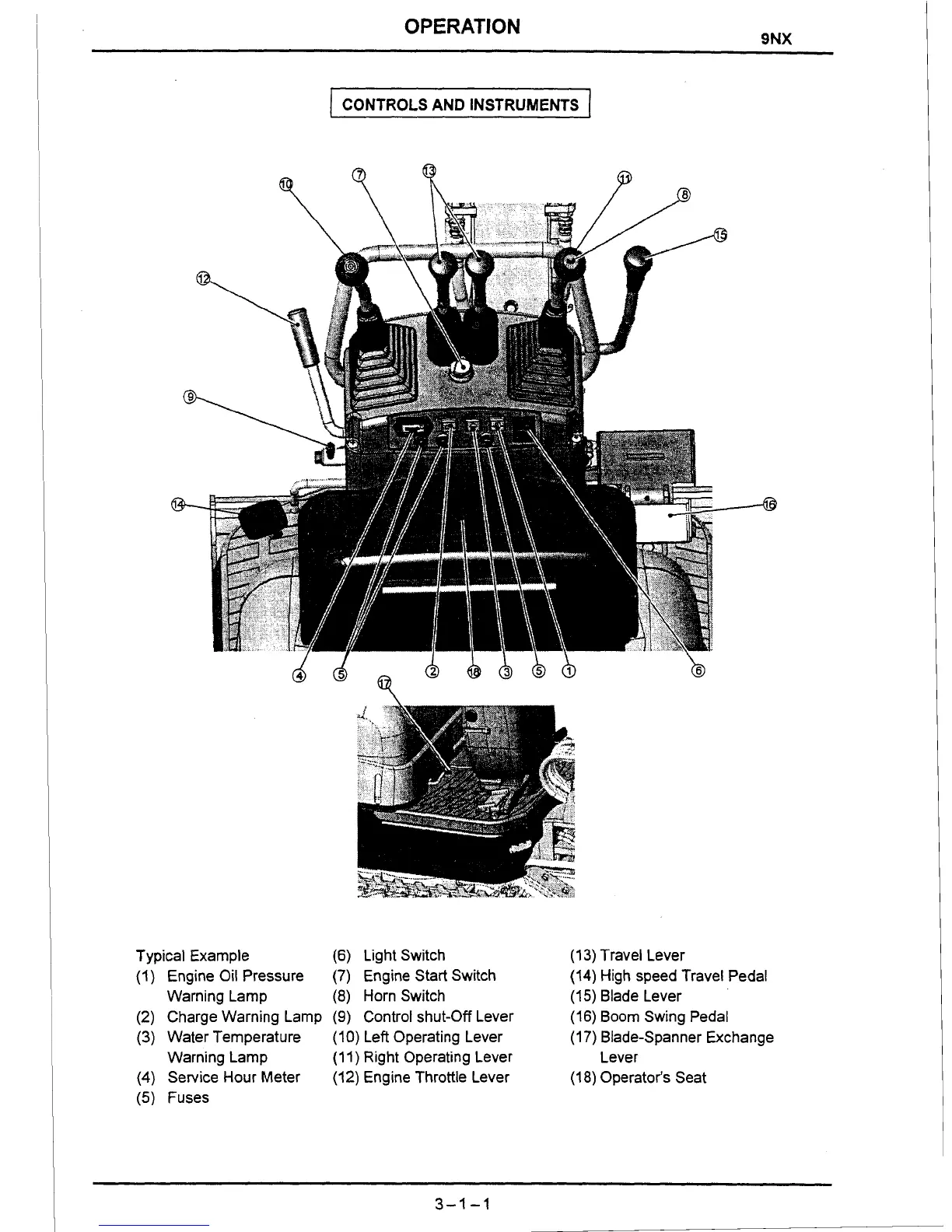 Service Hour Meter (12) Engine Throttle Lever (1 8) Operator's Seat