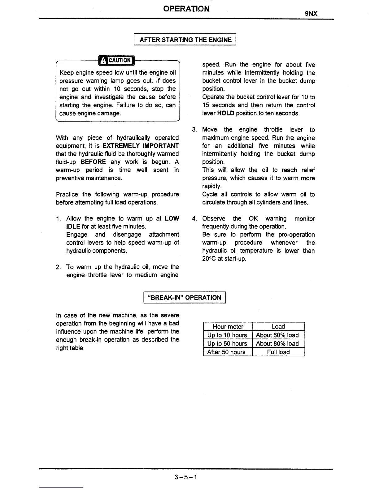 that the hydraulic fluid be thoroughly warmed