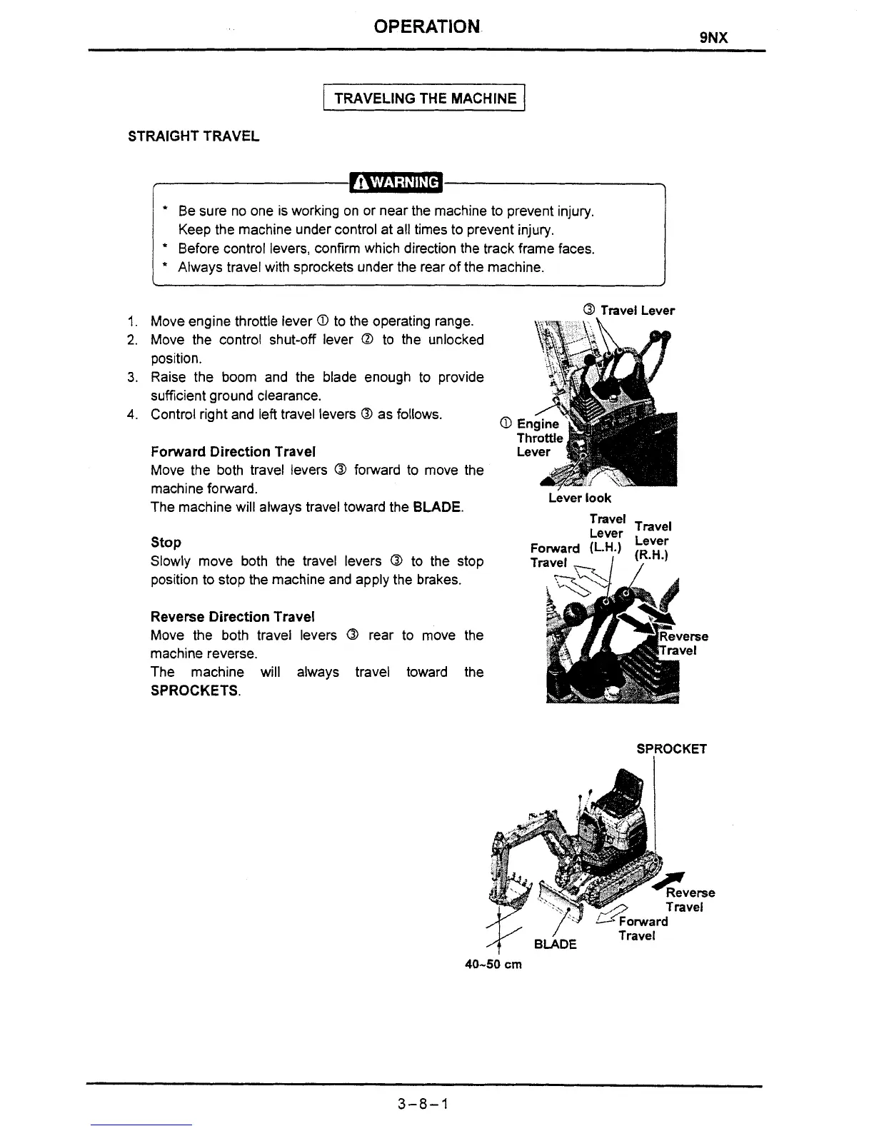 Always travel with sprockets under the rear of the machine.