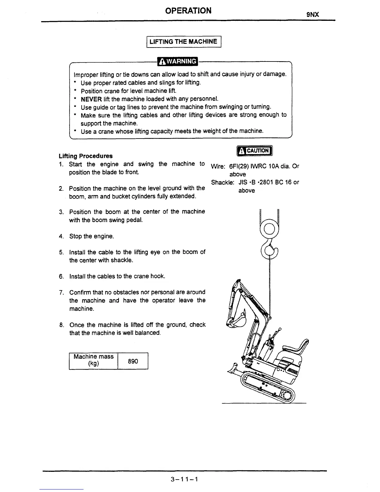NEVER lift the machine loaded with any personnel.