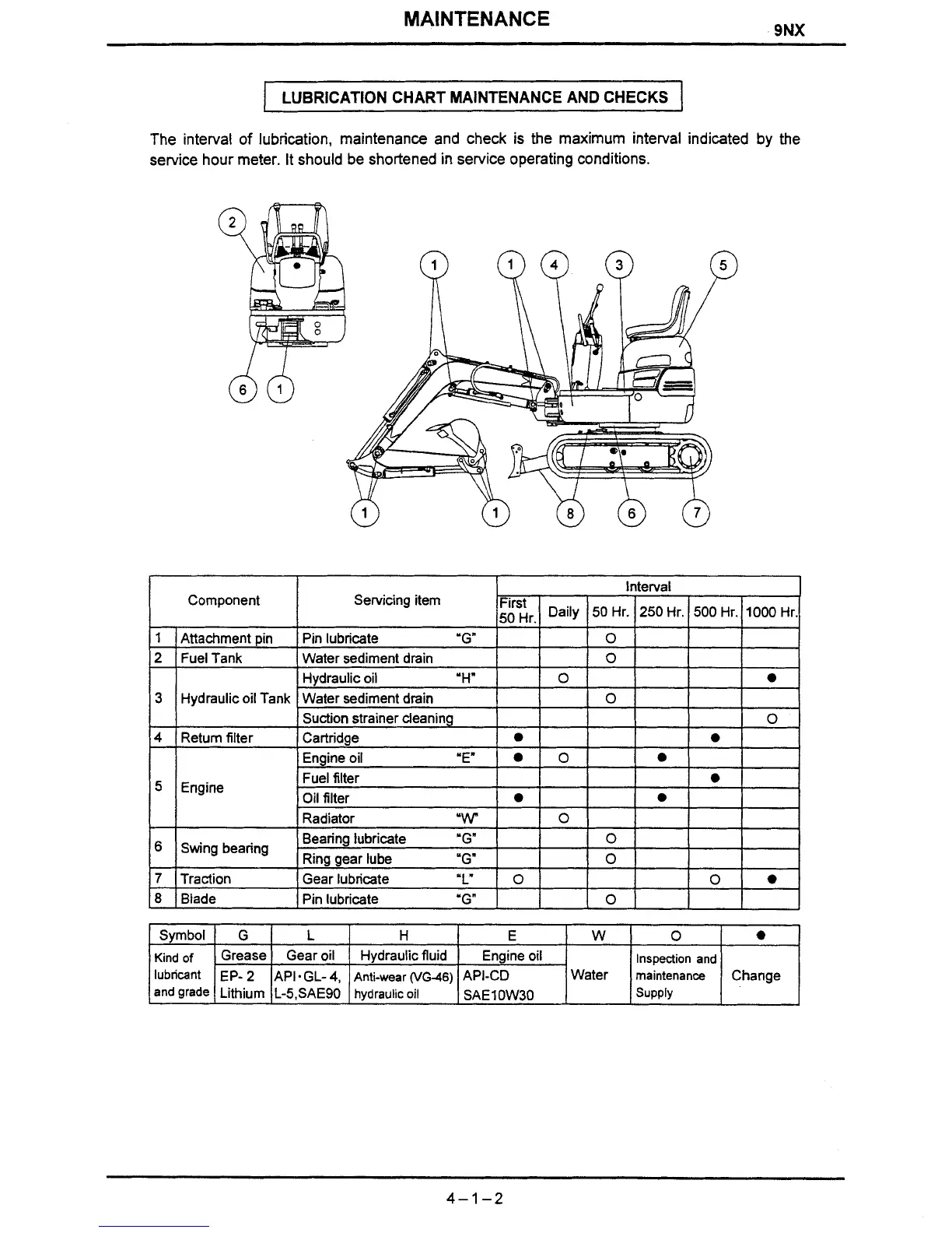 IHI 9NX - Lubrication Chart