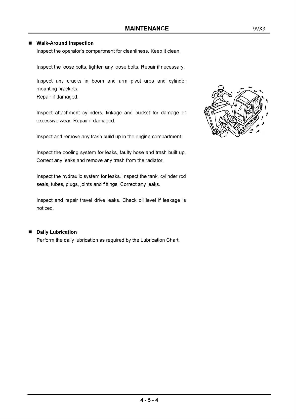 Inspect the operator’s compartment for cleanliness. Keep it clean.