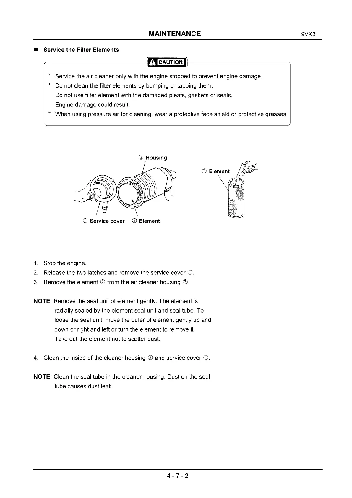 * Service the air cleaner only with the engine stopped to prevent engine damage.