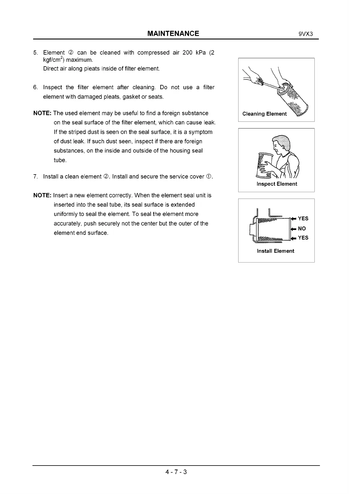6 . Inspect the filter element after cleaning. Do not use a filter