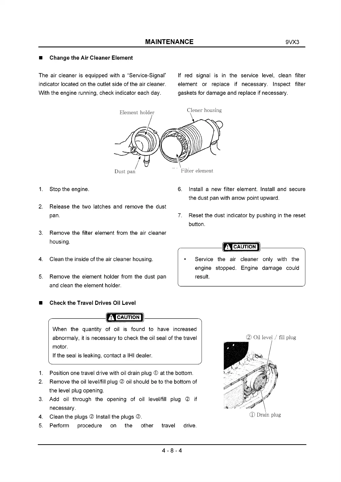 abnormaly, it is necessary to check the oil seal of the travel