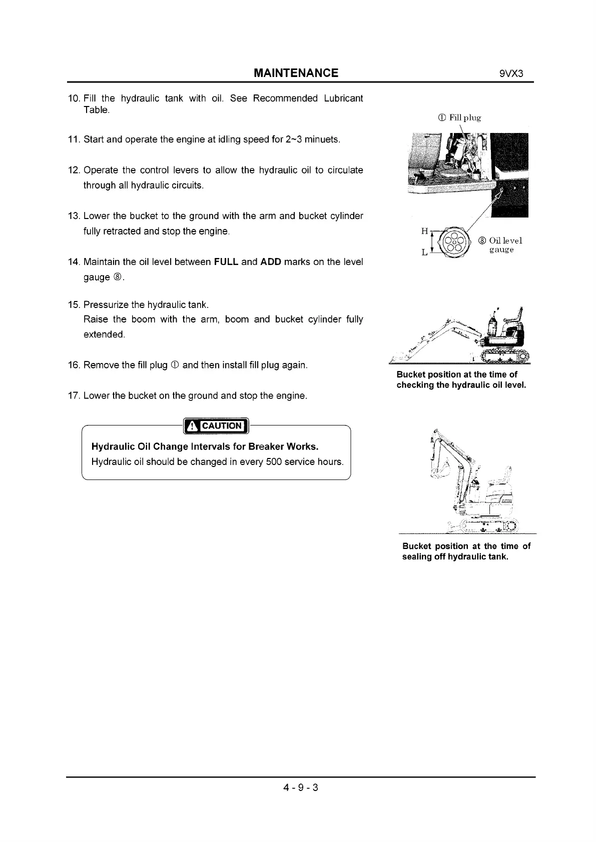 12. Operate the control levers to allow the hydraulic oil to circulate