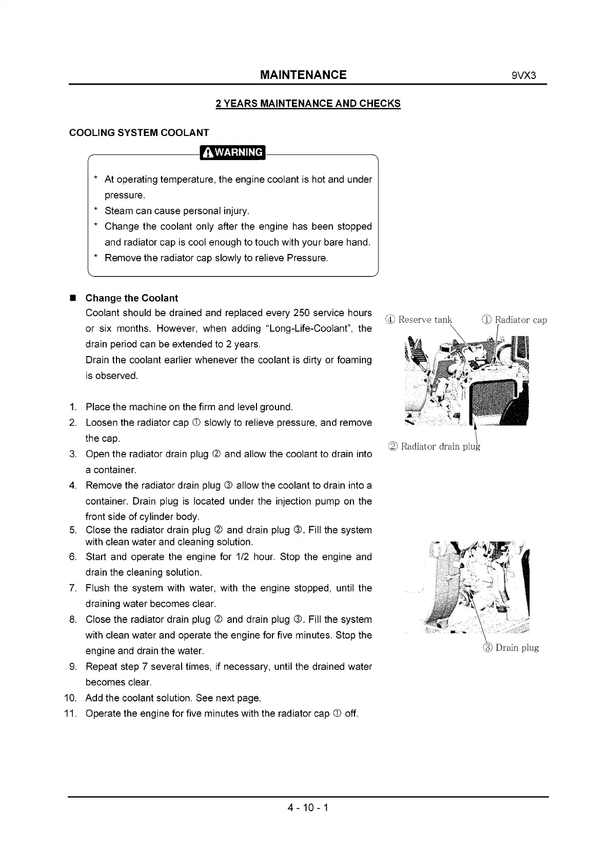 Change the coolant only after the engine has been stopped