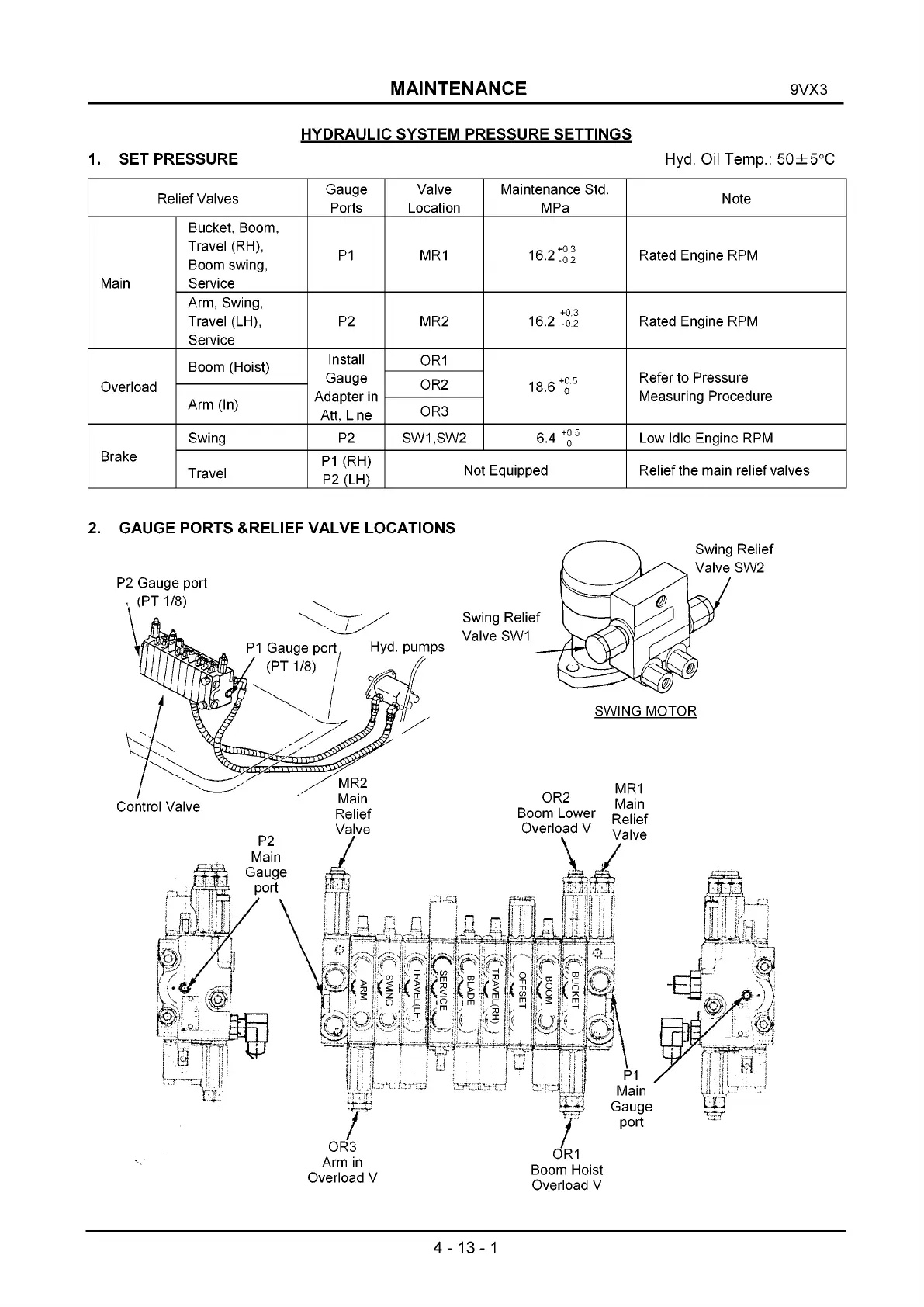 1. SET PRESSURE Hyd. Oil Temp.: 50±5°C
