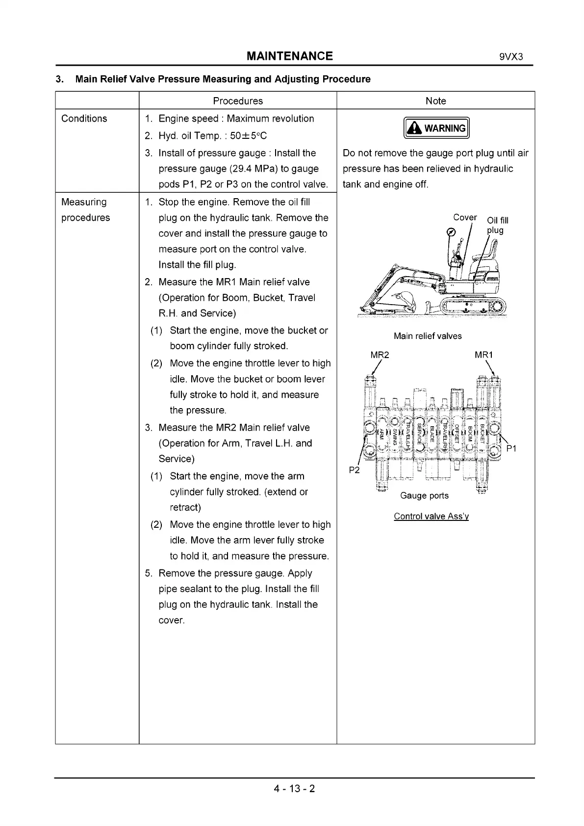 3. Main Relief Valve Pressure Measuring and Adjusting Procedure