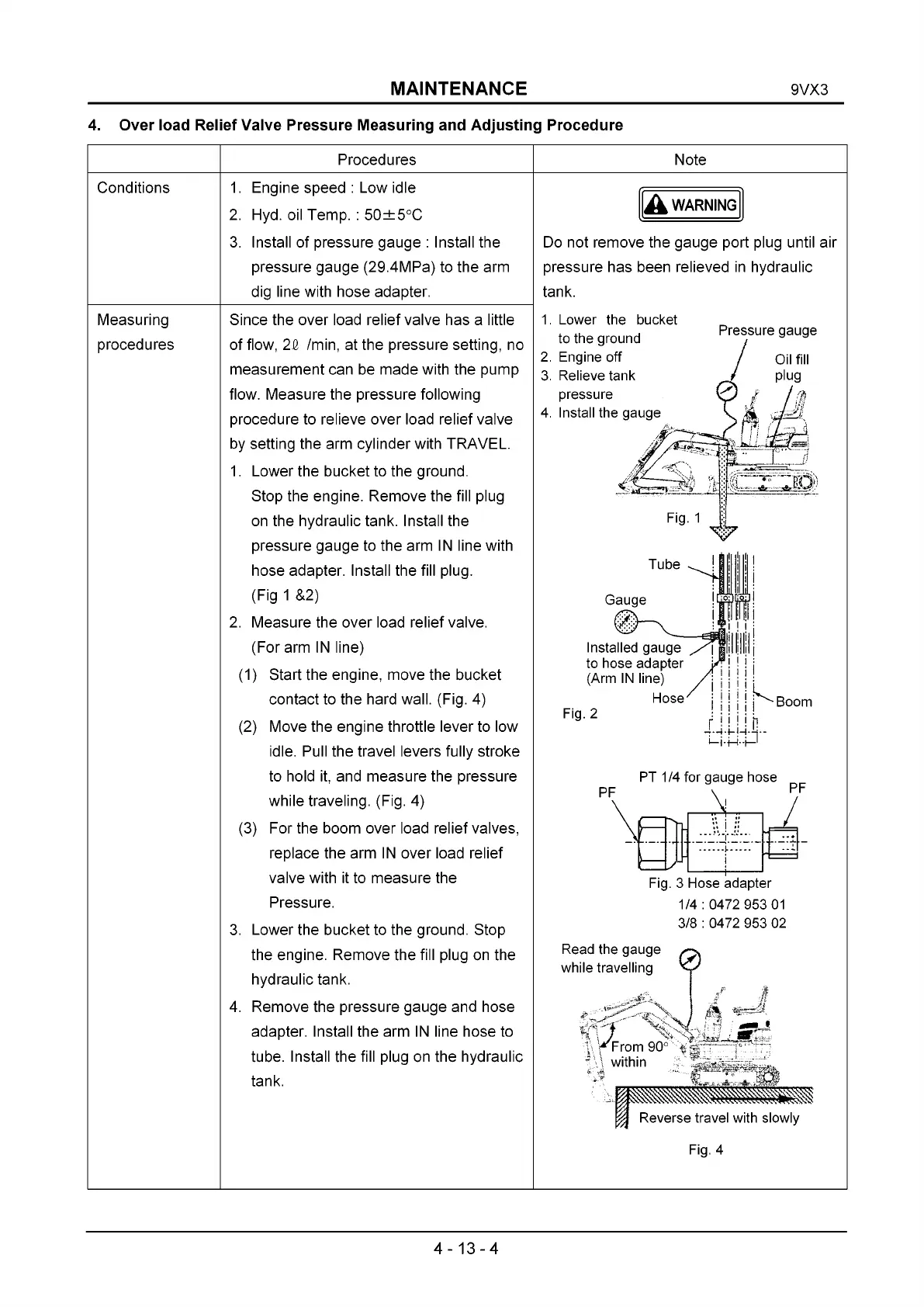 4. Over load Relief Valve Pressure Measuring and Adjusting Procedure