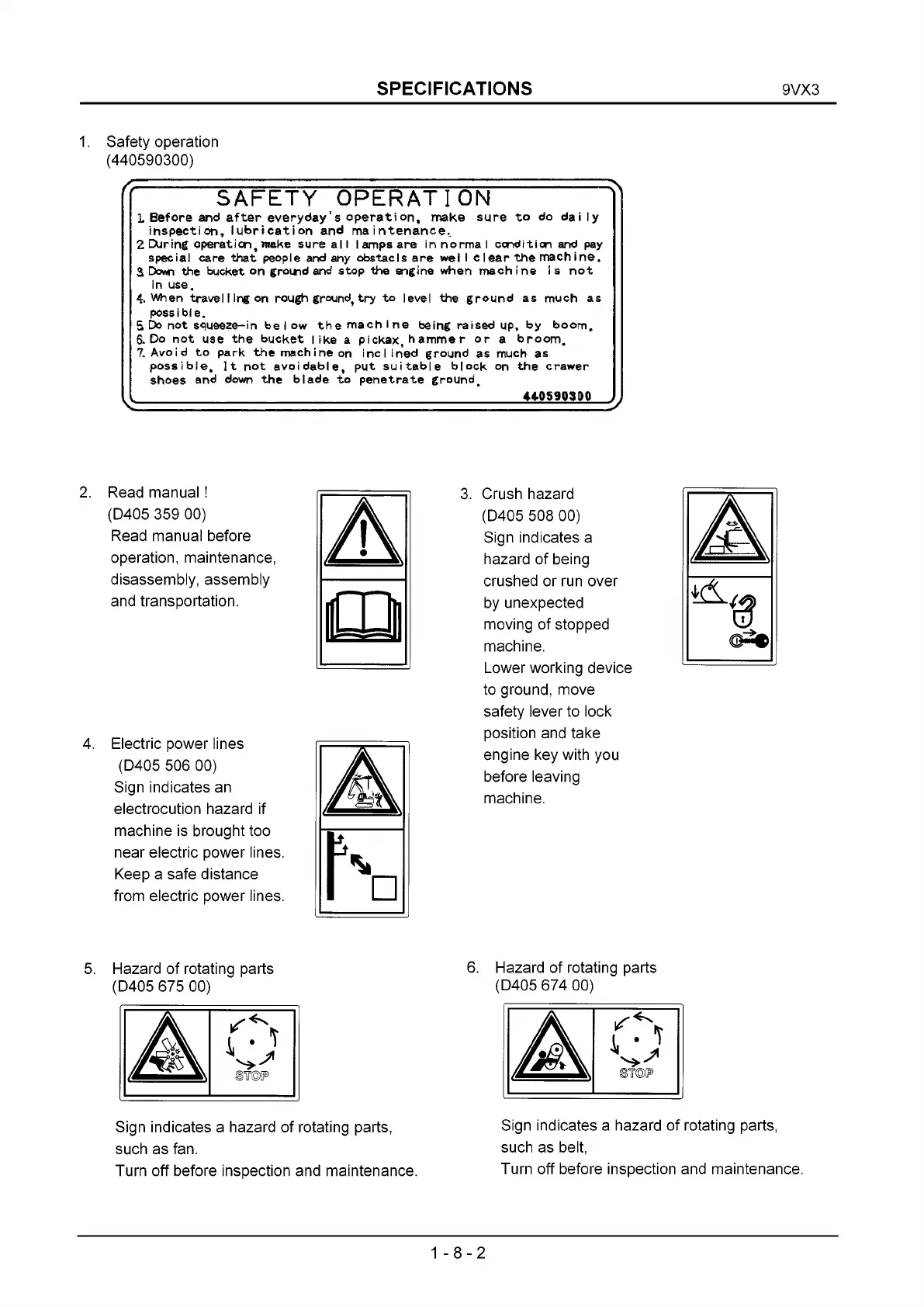 5 Do not squeeze-in be I ow th e m a c h in e being raised up, by boom.