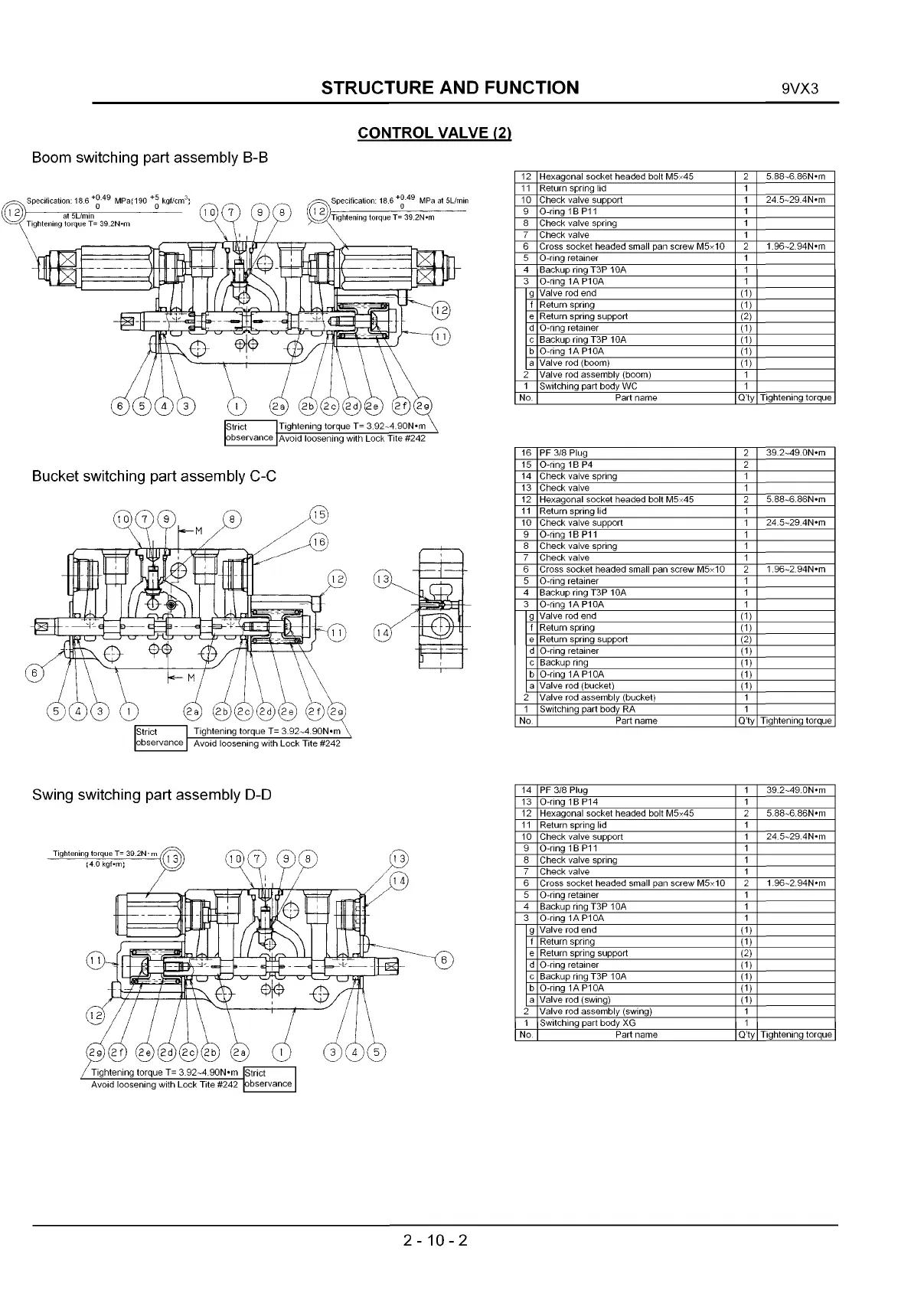 Swing switching part assembly D-D