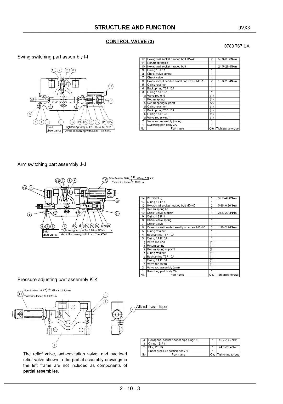 relief valve shown in the partial assembly drawings in