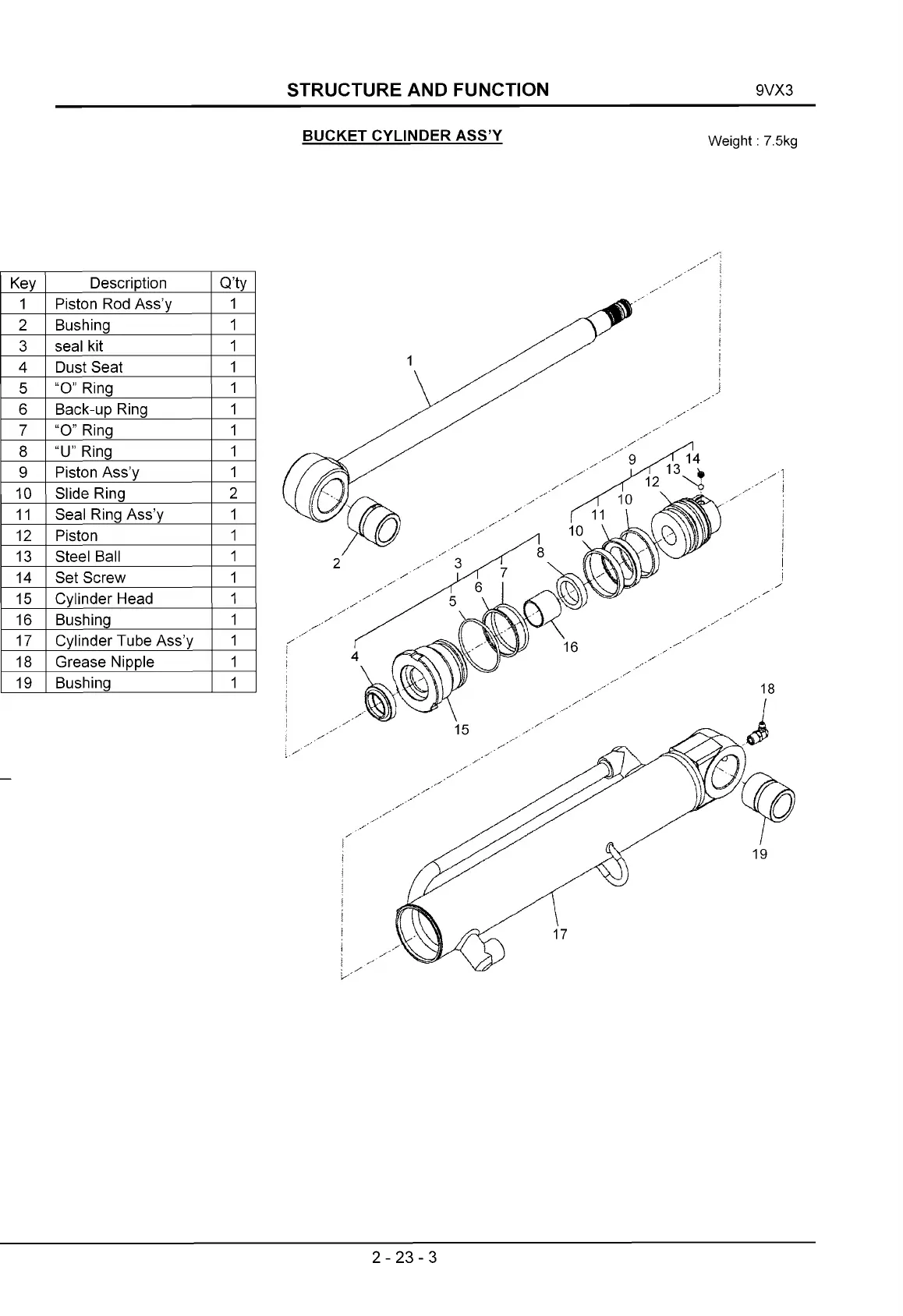 BUCKET CYLINDER ASSY Weight. 7 5kg