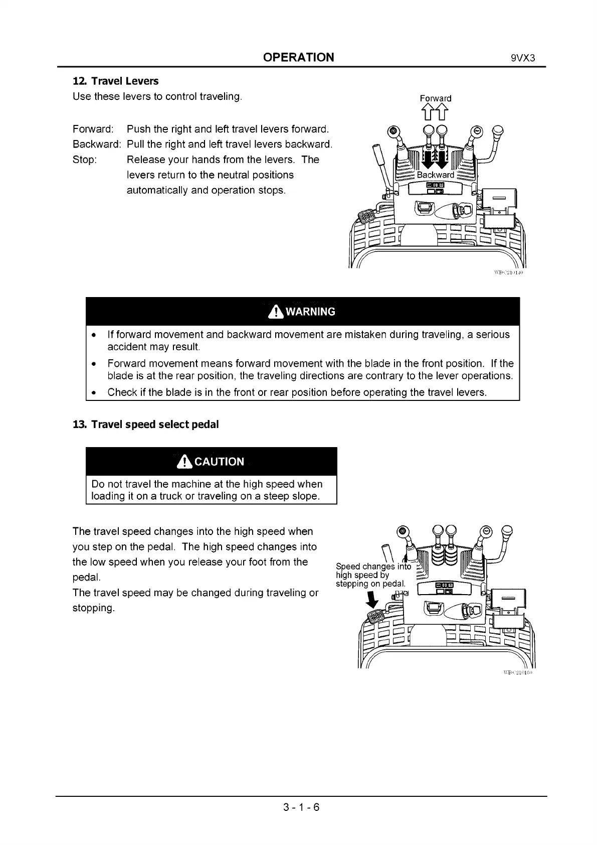 blade is at the rear position, the traveling directions are contrary to the lever operations.