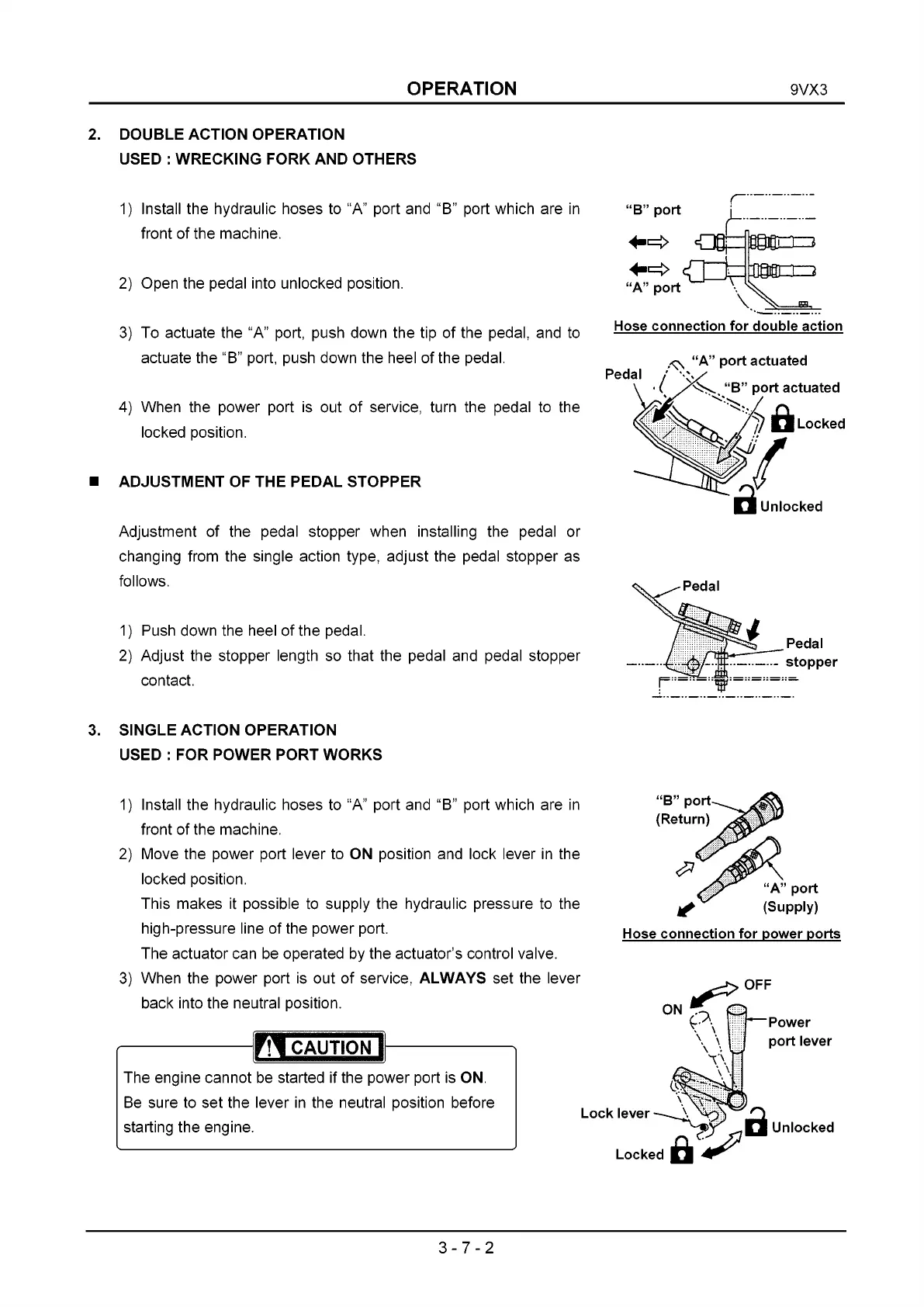 3) To actuate the “A” port, push down the tip of the pedal, and to