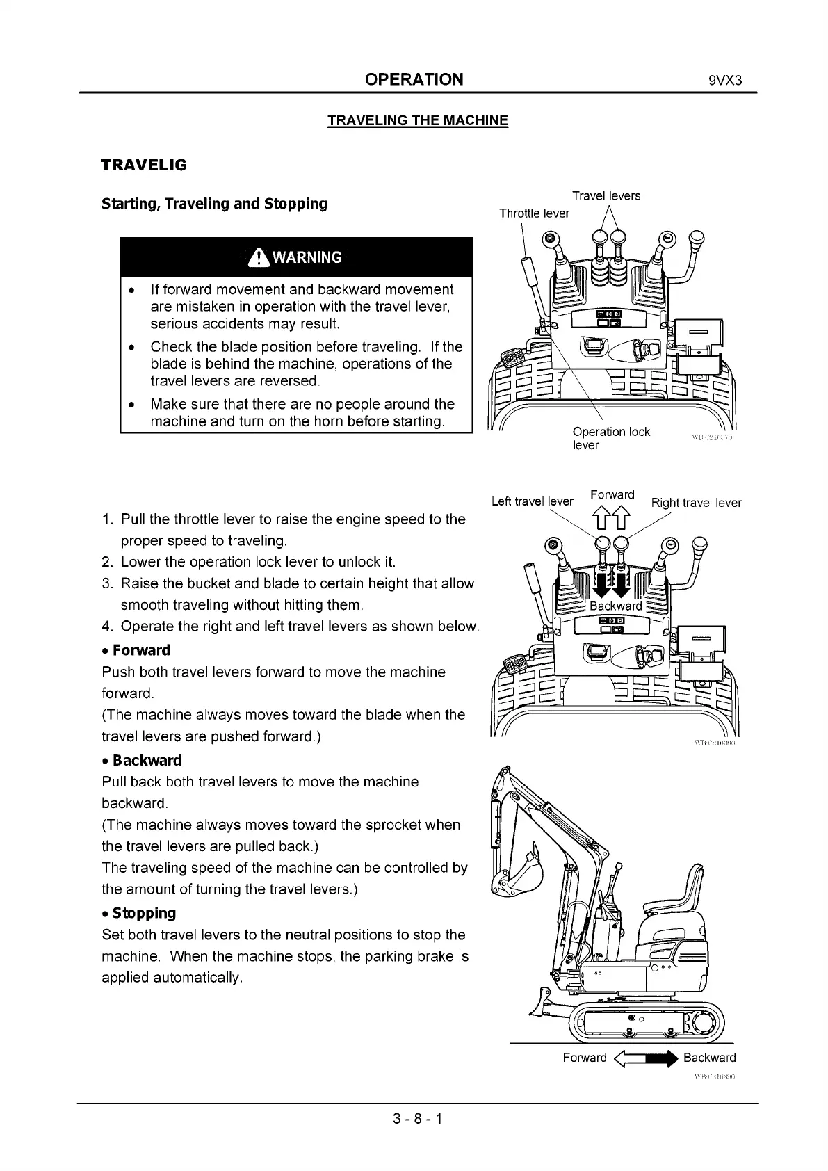 travel levers are pushed forward.)