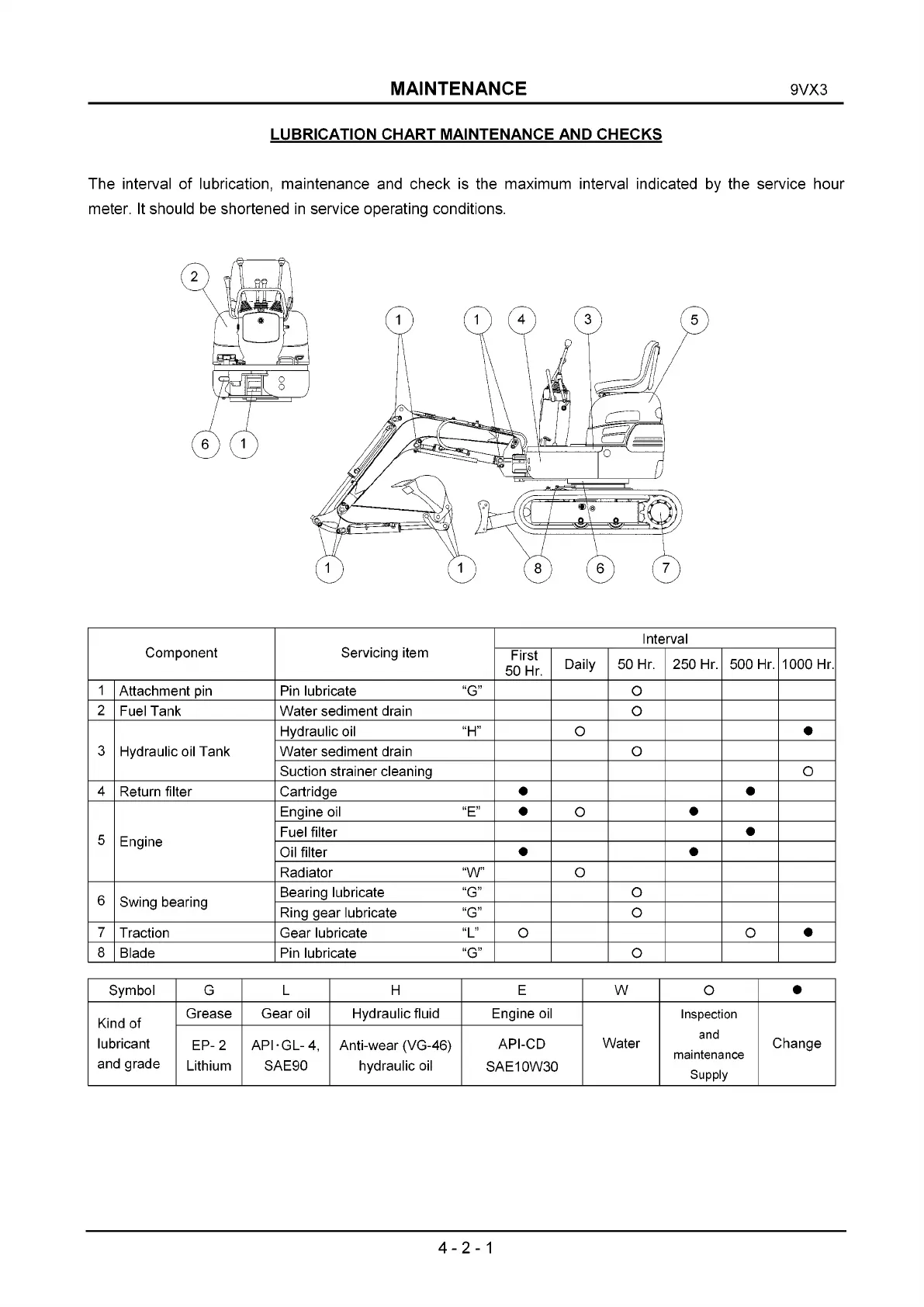 The interval of lubrication, maintenance and check is the maximum interval indicated by the service hour
