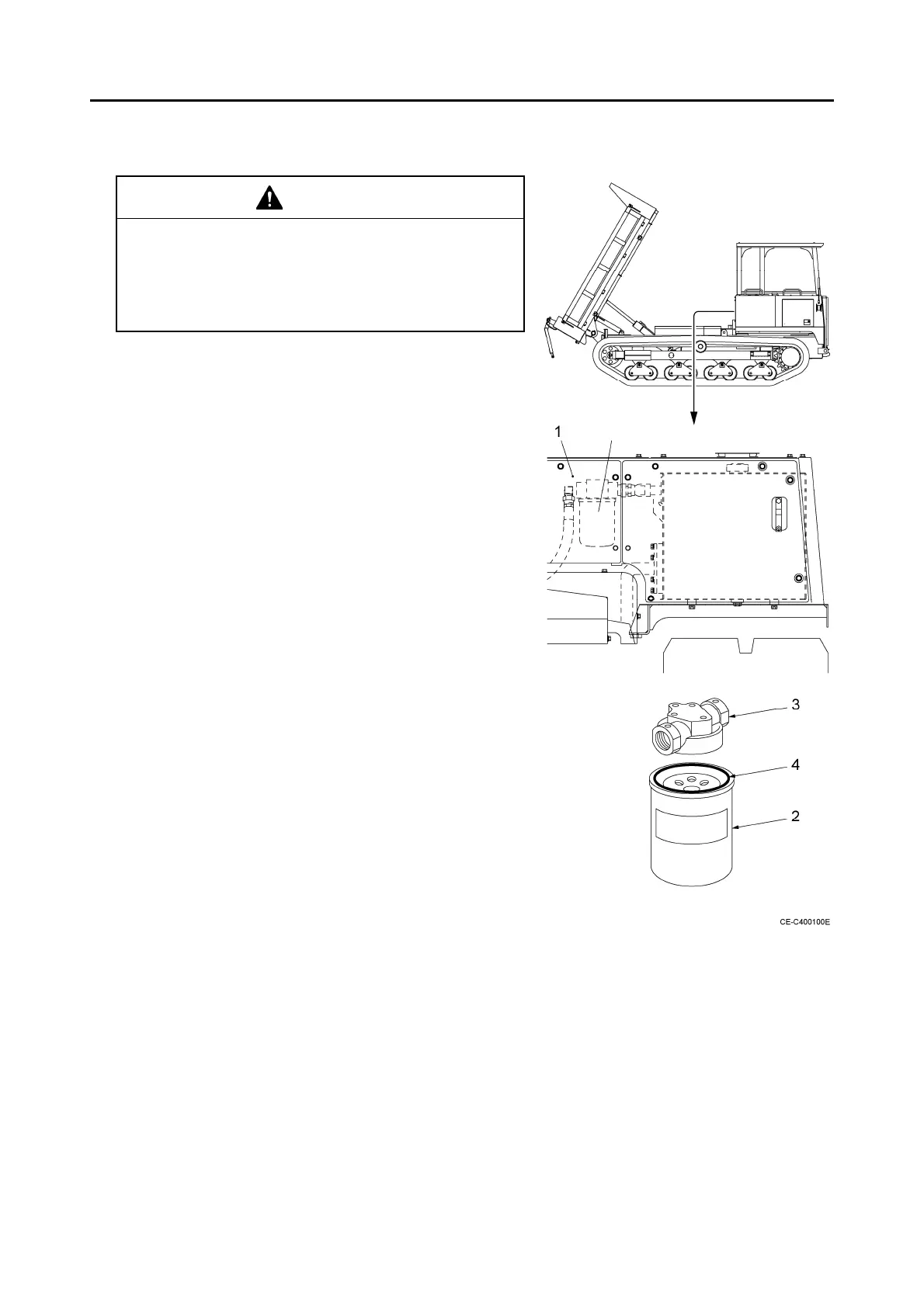 Apply hydraulic oil to the O ring (4) of a new filter