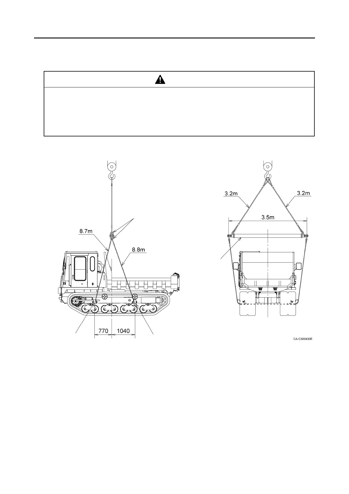 2. Fix the sling jigs at the positions of the crawler frame shown above and pass the wire