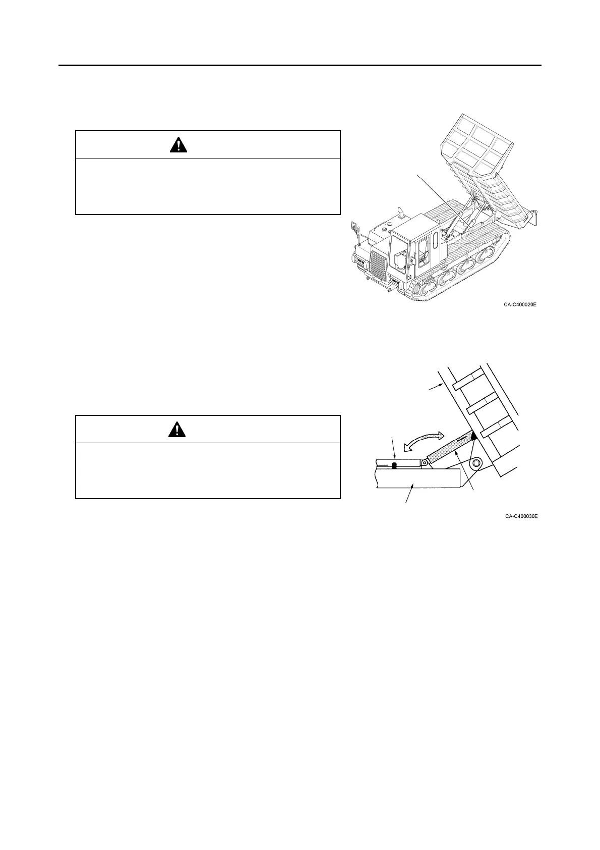 Do not start the engine or lower the body while the