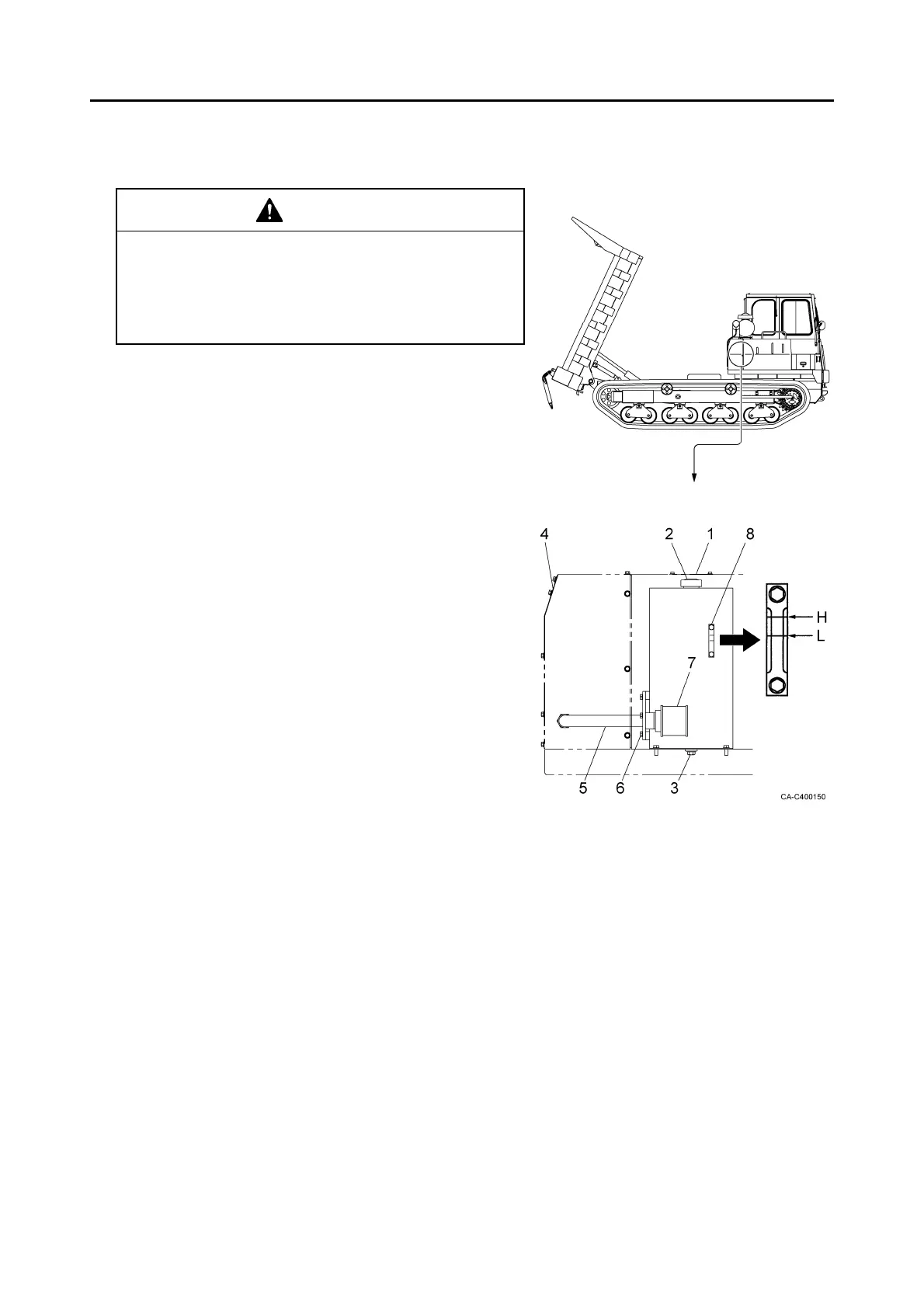 the posture for checking the hydraulic oil level. Stop