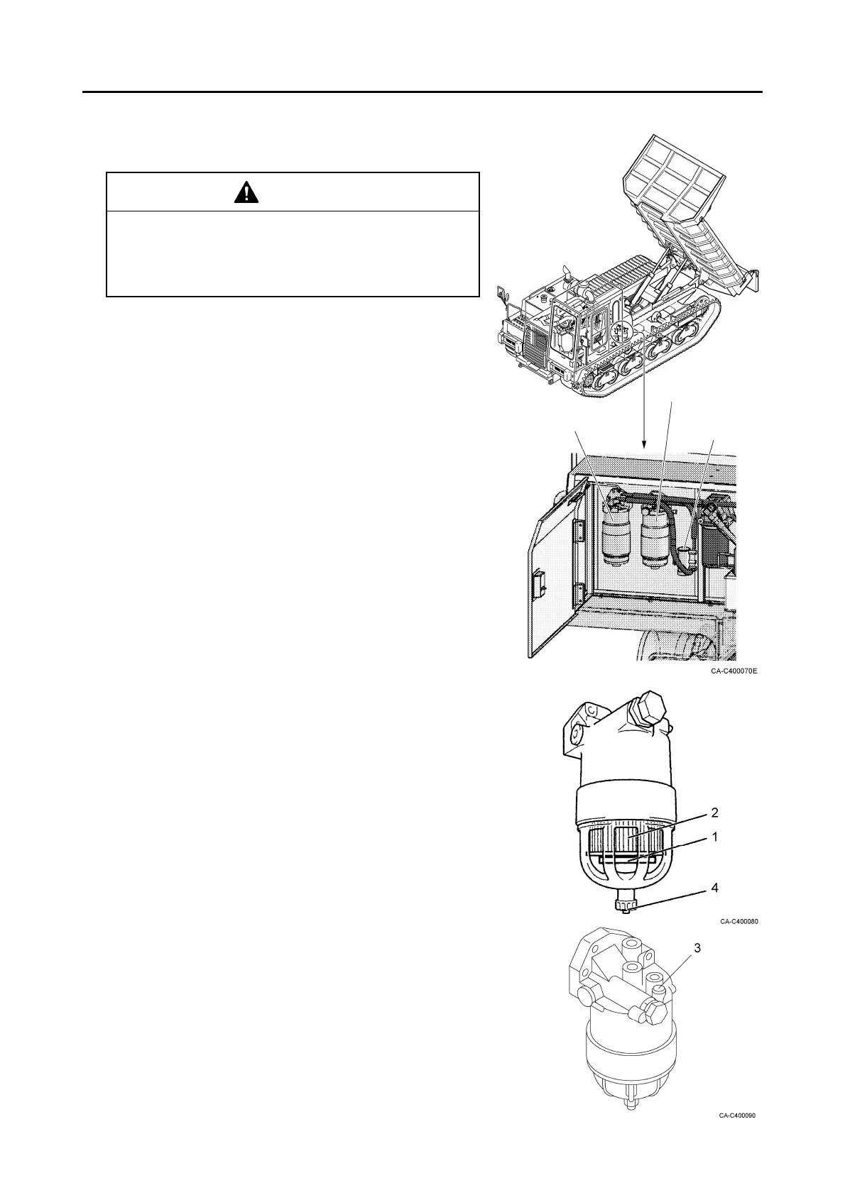 2. Loosen the air bleeder plug (3) on the top of the filter.