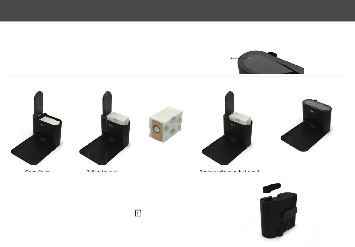 The Auto Empty Base will indicate when the dust bag is full on the smart LED display panel (Dust bag indicator will be white). Discard dust bag once full and