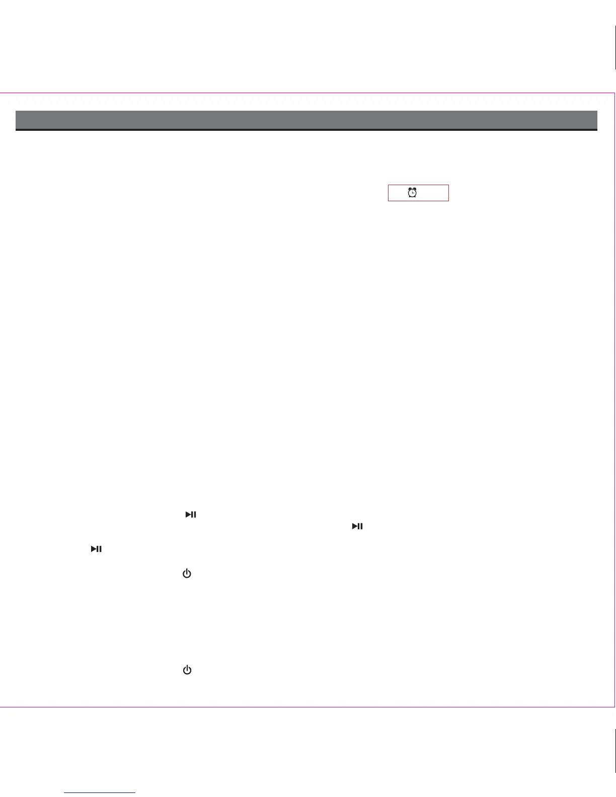 5. iPod/iPhone alarm will sound continually for 1 hour, radio/buzzer alarm will sound continually for 15 minutes.