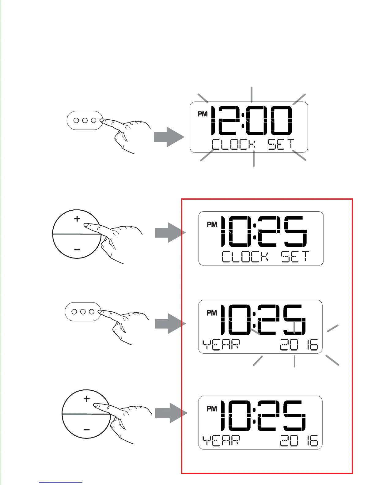 Press the - or + button to set the year.