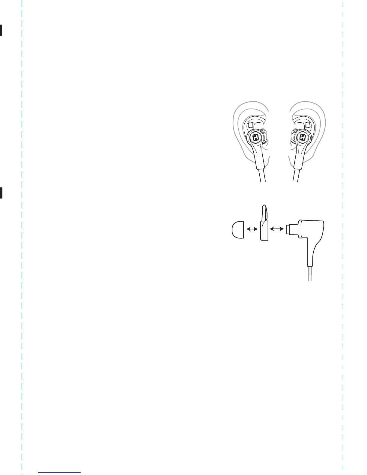 ‘L' and ‘R' fins with the corresponding earbuds, the ‘fins’ should hook into the front