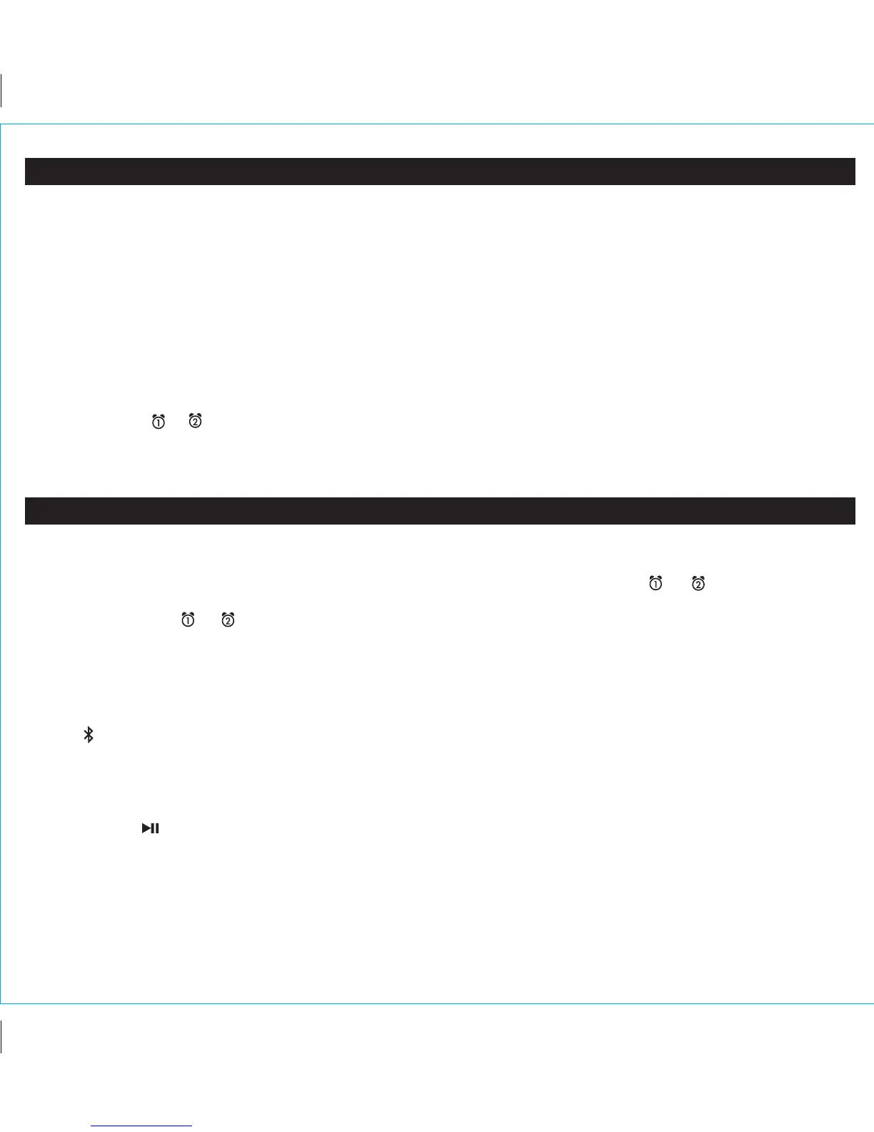 icon on the display. At the set alarm time the unit will send a play command to the currently linked Bluetooth device.