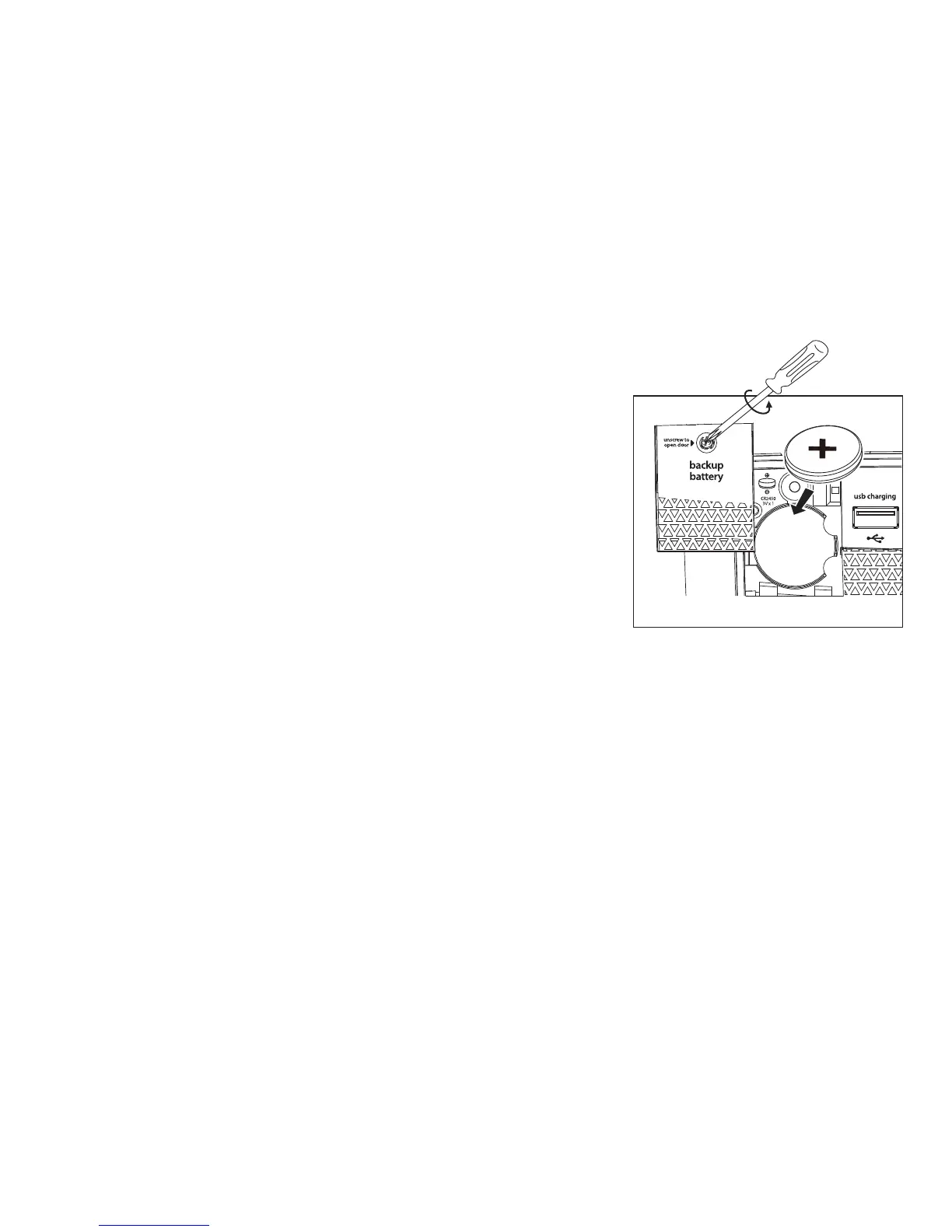 IMPORTANT: When replacing the backup battery be sure to have the unit connected to the AC outlet to maintain
