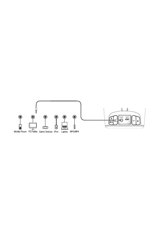 1. Connect micro USB charging/audio cable to the Charging/Aux-in USB Port on